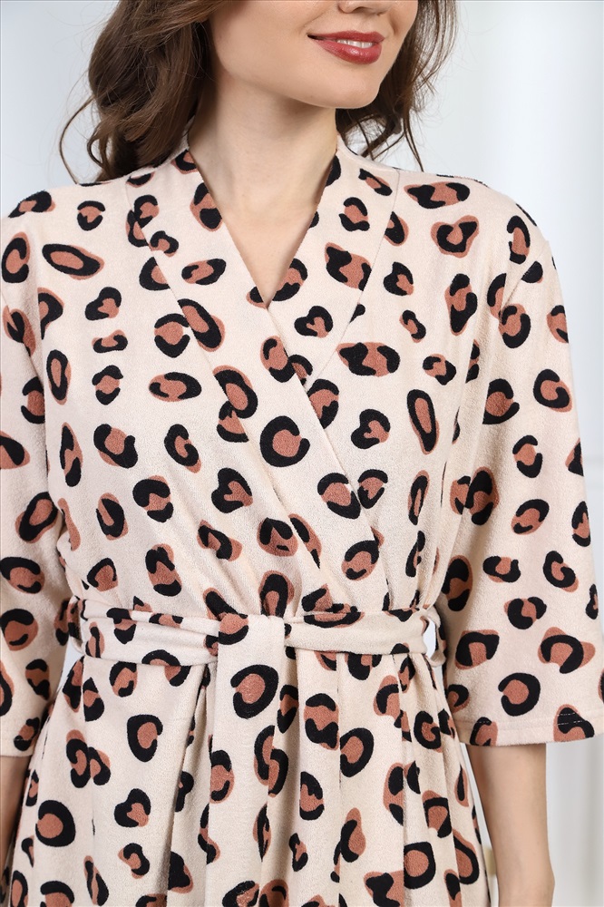 Ткань: Махра Махра - это хлопчатобумажная ткань, поверхность которой с одной стороны покрыта ворсом из петель нитей. Это очень мягкая ткань, легко впитывает влагу в больших количествах. Махра - натуральный материал, он гипоаллергенный и воздухопроницаемый. Ворс может быть с одной стороны или с двух (односторонняя или двусторонняя махра). Так оставаться в виде петель, либо стриженым. Стричь ворс могут сплошным полотном, или художественно выстригая узоры. Все это разновидности махровой ткани. Халат молодежный из трикотажного полотна «махра», на запахе, с втачными рукавами ¾ длины, карманами в боковых швах, со съемным поясом, завязывающимся на талии и продетым в две шлевки. Бортовые срезы и горловина обработаны притачной планкой.