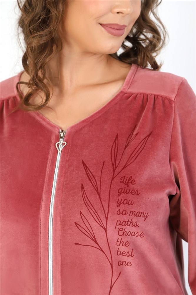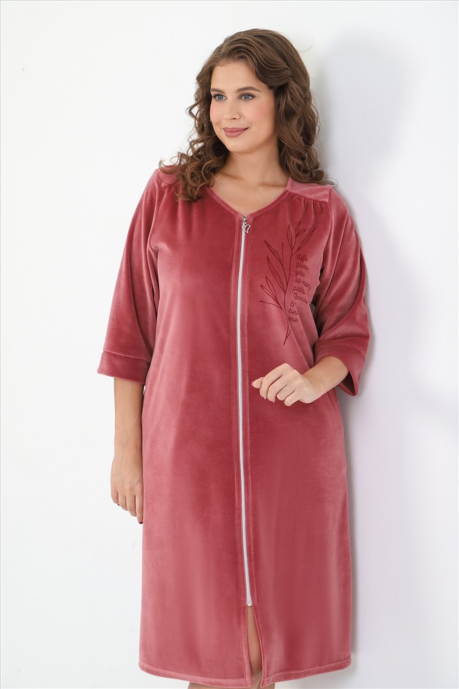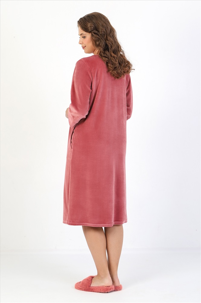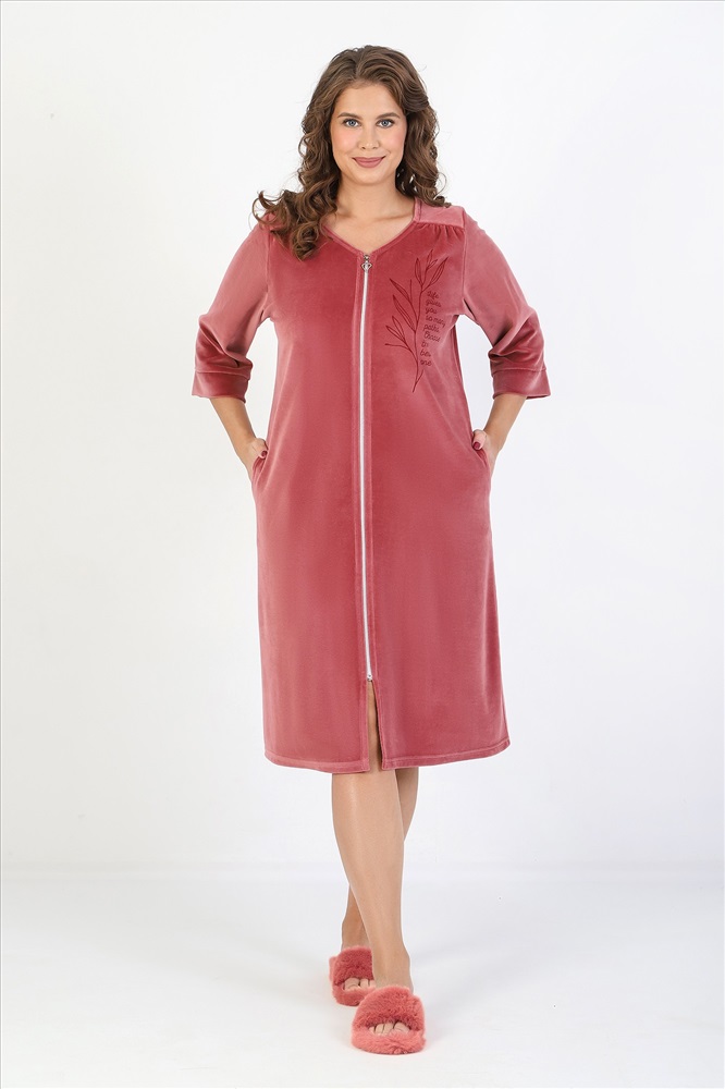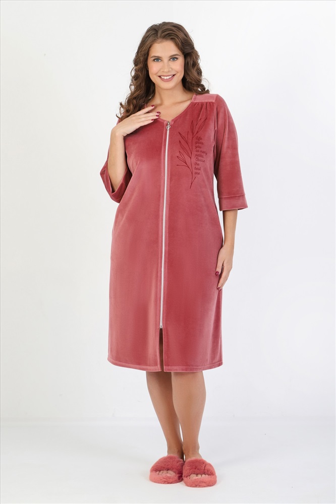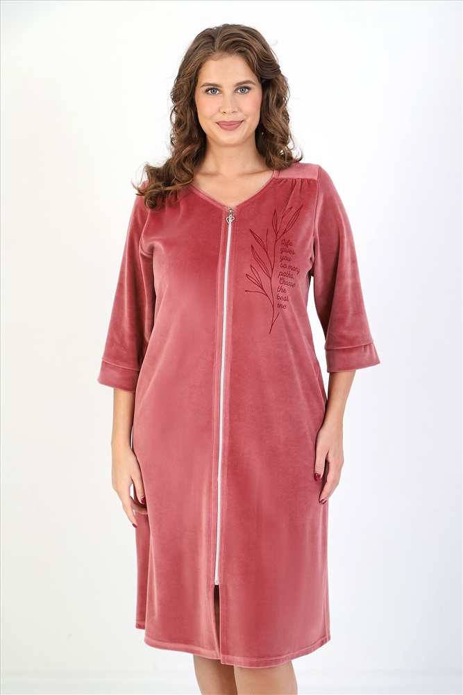 Халат женский из гладкокрашеного полотна «велюр», слегка расширенный книзу, с