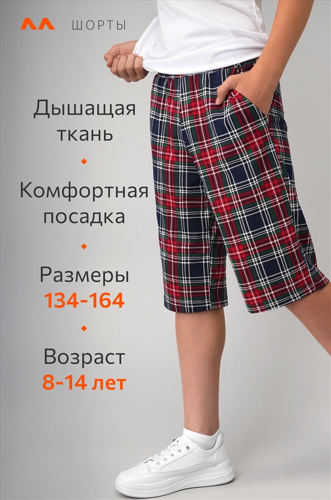 Подарите подростку комфорт и отличное настроение с шортами в клетку. Детские домашние клетчатые шорты для мальчика подойдут для отдыха — лёгкие, удобные и стильные.