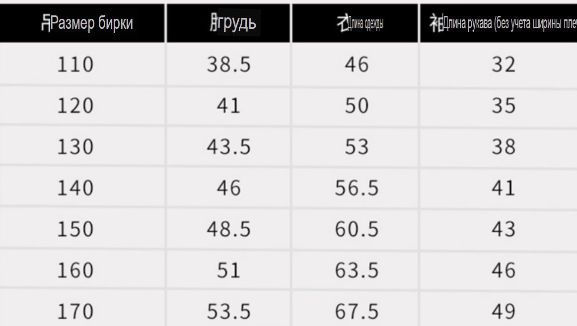 Размер: 110, 120, 130, 140, 150, 160, 170