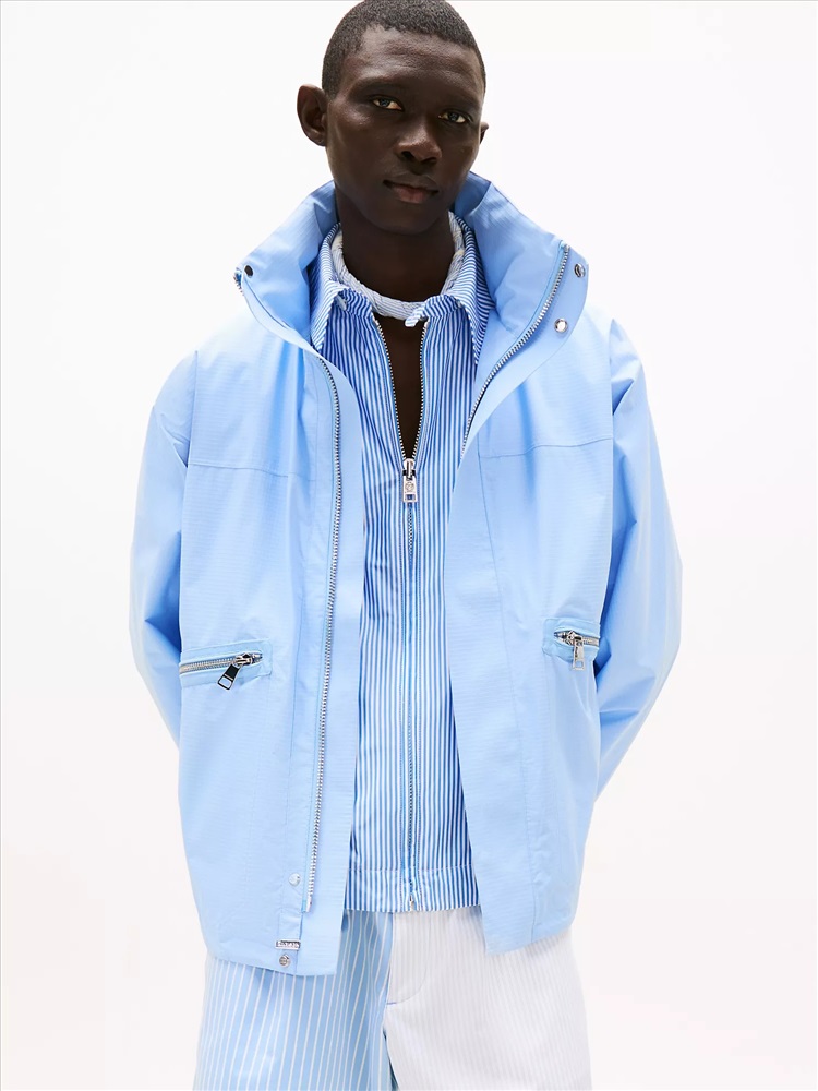 Tommy Hilfiger men's jacket. Made from durable ripstop nylon, our hooded jacket resists snags and tears, making it ideal for outdoor and urban adventures. A limited-edition style from our Spring 2025 runway collection.