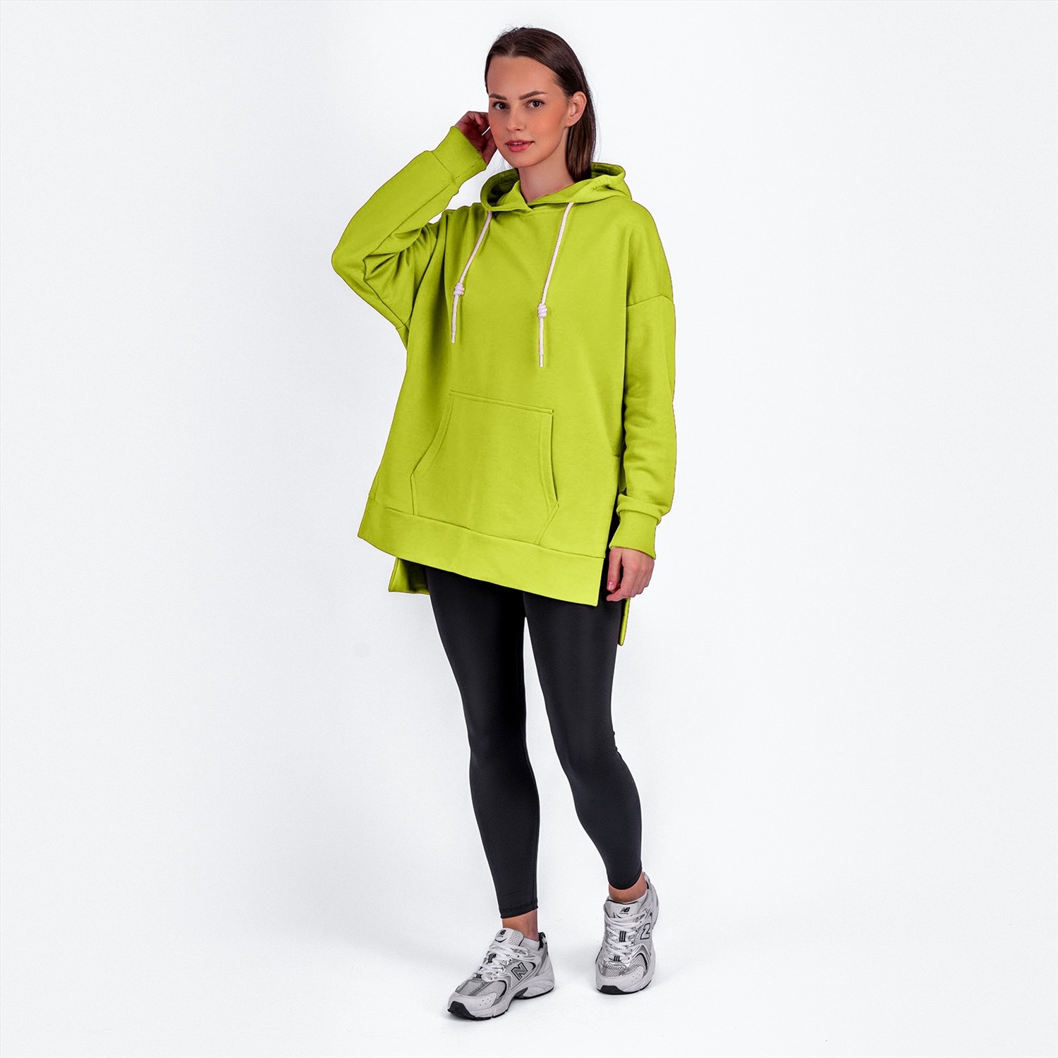 Женская худи с капюшоном и разрезами по боковому шву, карман кенгуру по переду.Материал: French terry б/н - футер 3-х нитка без начеса. Одна из самых плотных разновидностей футера. Тёплый, приятный на ощупь материал с гладкой лицевой стороной и мягкой изнаночной стороной.В стирке требует более бережного обращения. Рекомендуется утюжить и стирать вывернутыми (особенно изделия с принтом) на изнаночную сторону при температуре 30 градусов.ВНИМАНИЕ! Оттенок цвета ткани может отличаться в зависимости от партии товара, также могут быть незначительные отличия цветовых оттенков разных деталей одного изделия. Производители ткани не считают это браком, объясняя это технологическими особенностями производства. Цветовая гамма товара может быть изменена (в рамках допуска) производителем трикотажных полотен в зависимости от серии поставки без предварительного уведомления.В связи с этим, подбор комплекта одежды в одном оттенке возможен только в процессе формирования единого заказа.Состав: 70% Cotton 30% Polyester