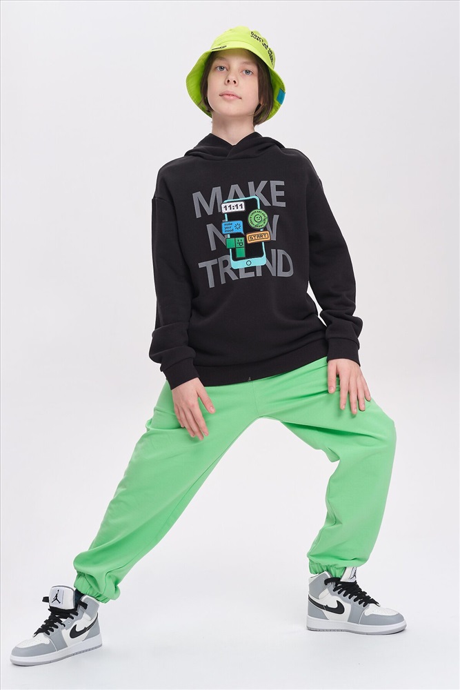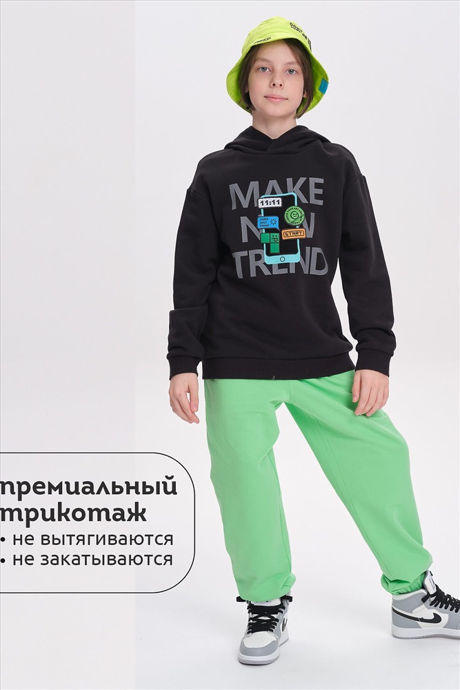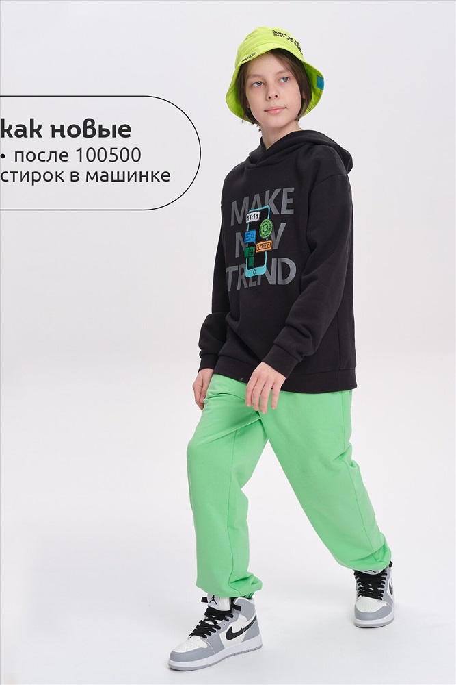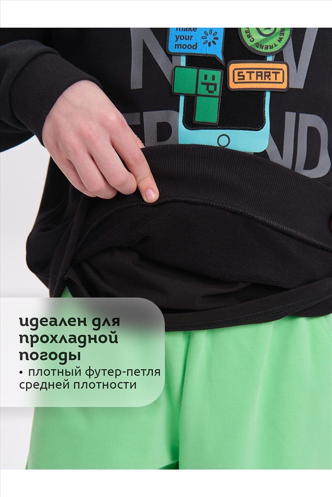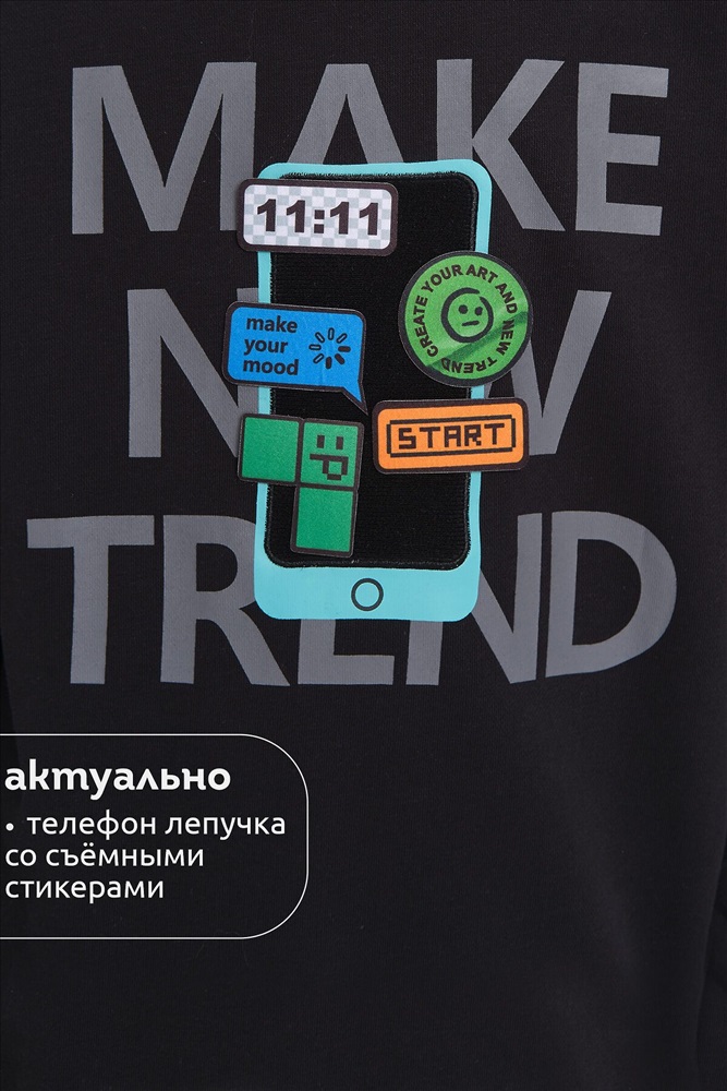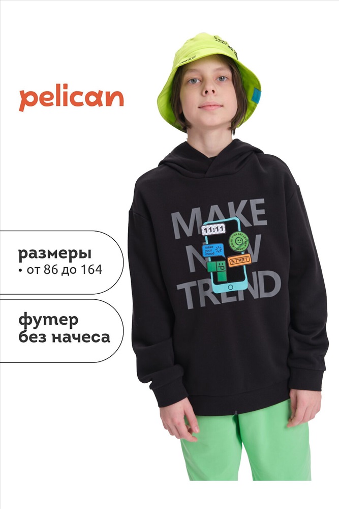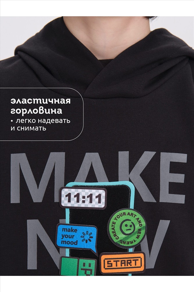 ID товара: 1104425 Состав: 87% Хлопок, 13% Полиэстер Сезон: Демисезон Длина: Средняя Фасон: Свободный Рукав: длинные Вырез горловины: Капюшон Рисунок: Надпись Декоративные элементы: Принт Основная ткань: Хлопок Стиль: повседневный Страна бренда: Россия Страна производства: Китай Худи для мальчика без начеса – актуальная вещь в любом сезоне, будь то весна, лето или осень. Кофта спортивная для мальчика выполнена из плотного футера-петля, который отлично согревает в прохладную погоду и при этом хорошо пропускает воздух – ребенок активно двигается, играет, не потеет. Толстовка свободного покроя оверсайз со спущенным плечом, углубленной проймой. Рукава а также низ изделия на манжете из рибаны. Кофта без карманов. Капюшон объемный, двухшовный без регулировки. Изделие выполнено в актуальном стиле Digital и понравится юным геймерам, а также любителям одежды в корейском стиле и в стиле аниме. Пайта в базовом цвете украшено нашивкой-липучкой со съемными стикерами. По переду текстовый принт. Перевод принта "make new trends" - делай новые тренды. Размерный ряд подходит как для малышей так и для подростков. Комментарии к товару