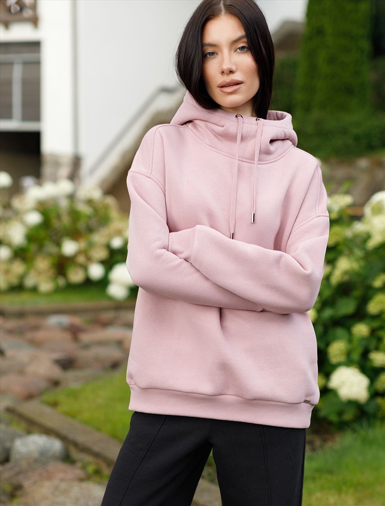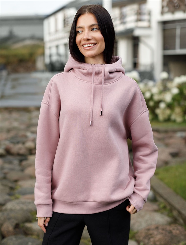 Размер товара на первом фото: 42 Уютное худи пыльно-розового цвета с цельнокроенным капюшоном и спущенной линией плеча создано для комфорта в холодную погоду. Модель выполнена из премиального футера трехнитки с мягким начесом, что обеспечивает дополнительное тепло и приятные ощущения при носке. Глубокий капюшон дополнен шнуром для регулировки объема, что обеспечивает отличную защиту от ветра и холода, а серебристая фурнитура добавляет стильный акцент к современному худи. Эластичные манжеты на рукавах и по низу обеспечивают дополнительную защиту от продувания, способствуя сохранению тепла внутри. Натуральный хлопок гарантирует дышащий эффект, позволяя сохранять оптимальный микроклимат тела даже при длительном ношении. Благодаря эластану в составе повседневное худи подходит для активного отдыха, вы будете чувствовать себя свободно в любой ситуации. Представлены большие размеры, что позволяет выбрать подходящий вариант для разных типов фигуры, обеспечивая комфортную посадку. Подойдет девушкам плюс сайз, в этом теплом джемпере вы будете чувствовать себя уверенно. Универсальный дизайн гармонично сочетается с повседневной одеждой — джинсами или спортивными штанами, вы можете составить комплект с брюками D44.149 и D44.151. Создайте расслабленный образ без лишних усилий с помощью этого стильного худи! Комментарии к товару