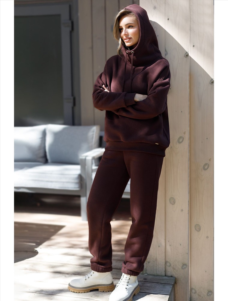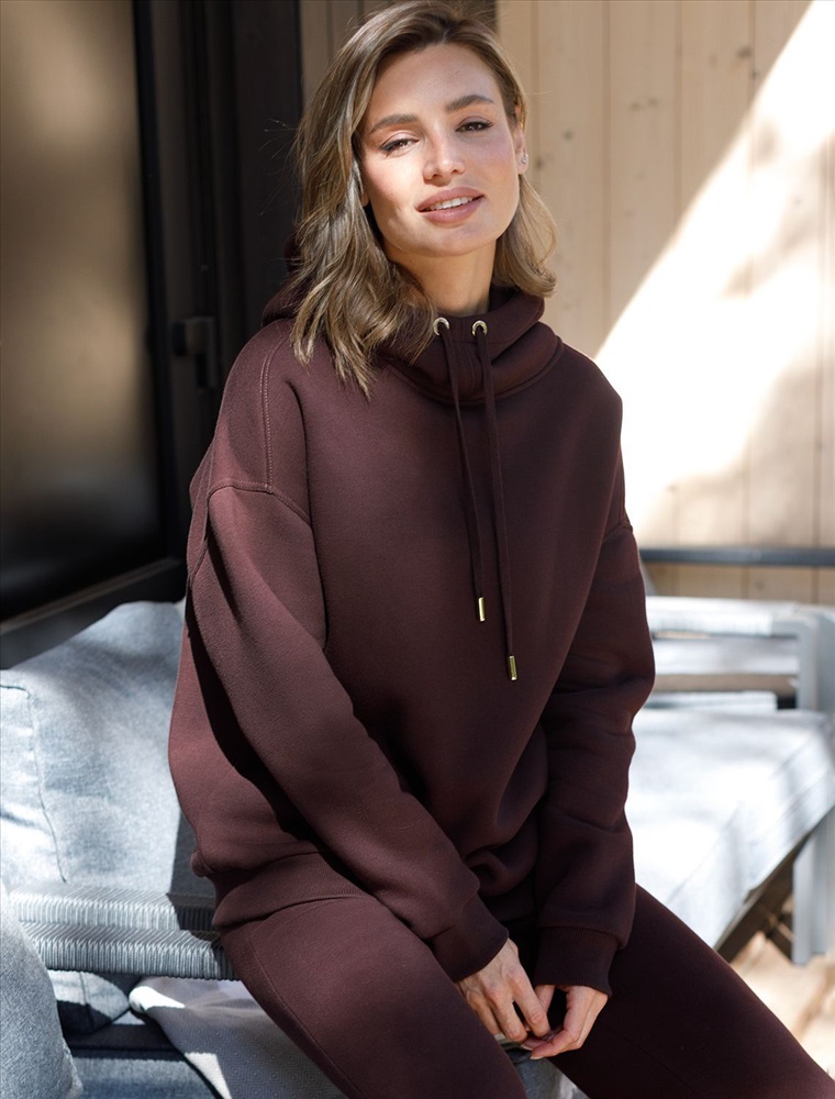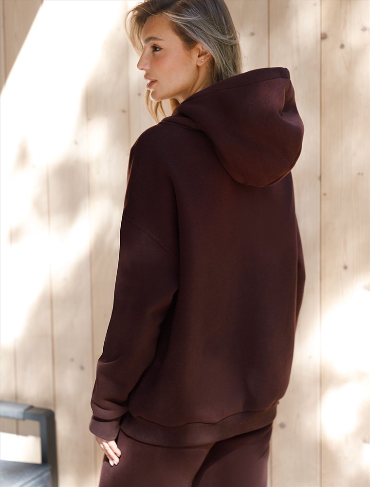 Уютное худи коричневого цвета с цельнокроенным капюшоном и спущенной линией плеча создано для комфорта в холодную погоду. Модель выполнена из премиального футера трехнитки с мягким начесом, что обеспечивает дополнительное тепло и приятные ощущения при носке. Глубокий капюшон дополнен шнуром для регулировки объема, что обеспечивает отличную защиту от ветра и холода, а серебристая фурнитура добавляет стильный акцент к современному худи. Эластичные манжеты на рукавах и по низу обеспечивают дополнительную защиту от продувания, способствуя сохранению тепла внутри. Натуральный хлопок гарантирует дышащий эффект, позволяя сохранять оптимальный микроклимат тела даже при длительном ношении. Благодаря эластану в составе повседневное худи подходит для активного отдыха, вы будете чувствовать себя свободно в любой ситуации.