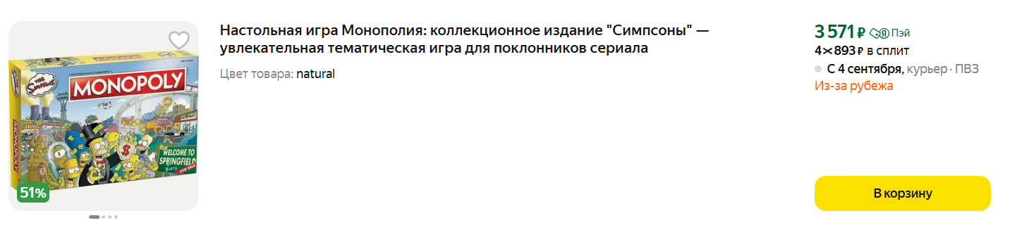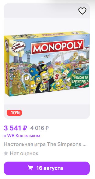 Игра монополия "Симпсоны". На яндекс маркете и WB эта игра стоит около 3500р