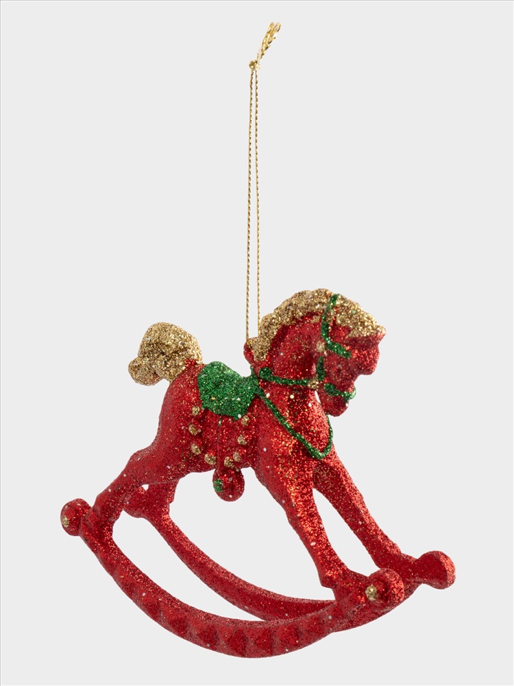 Игрушка елочная, 12х10 см, пластик, красная, Лошадка-качалка, New year