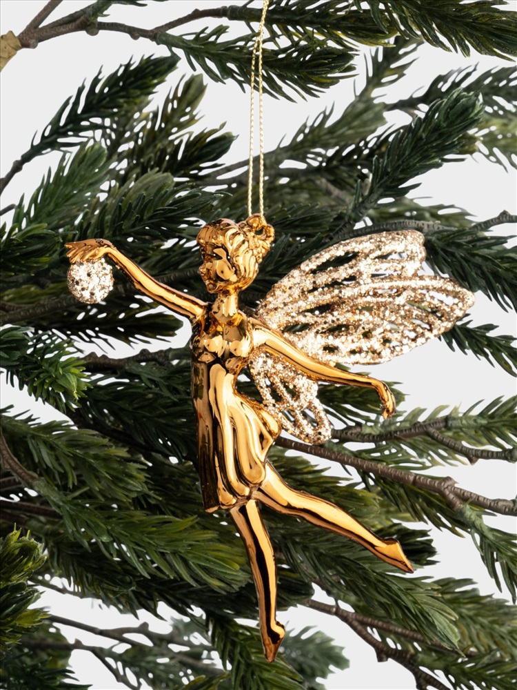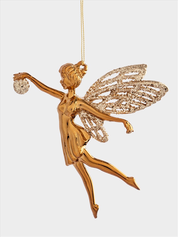 Игрушка елочная, 12х15 см, пластик, золотистая, Фея, New year