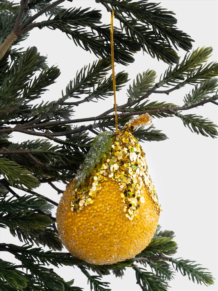 Игрушка елочная, 13 см, пенопласт/пластик, желтая, Груша, New year
