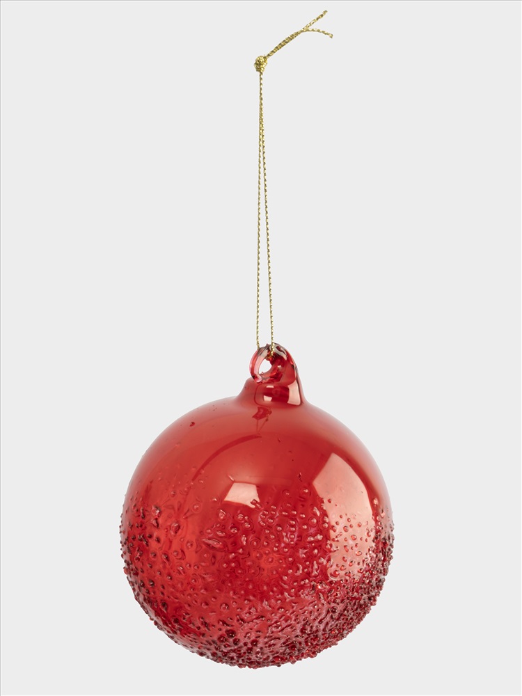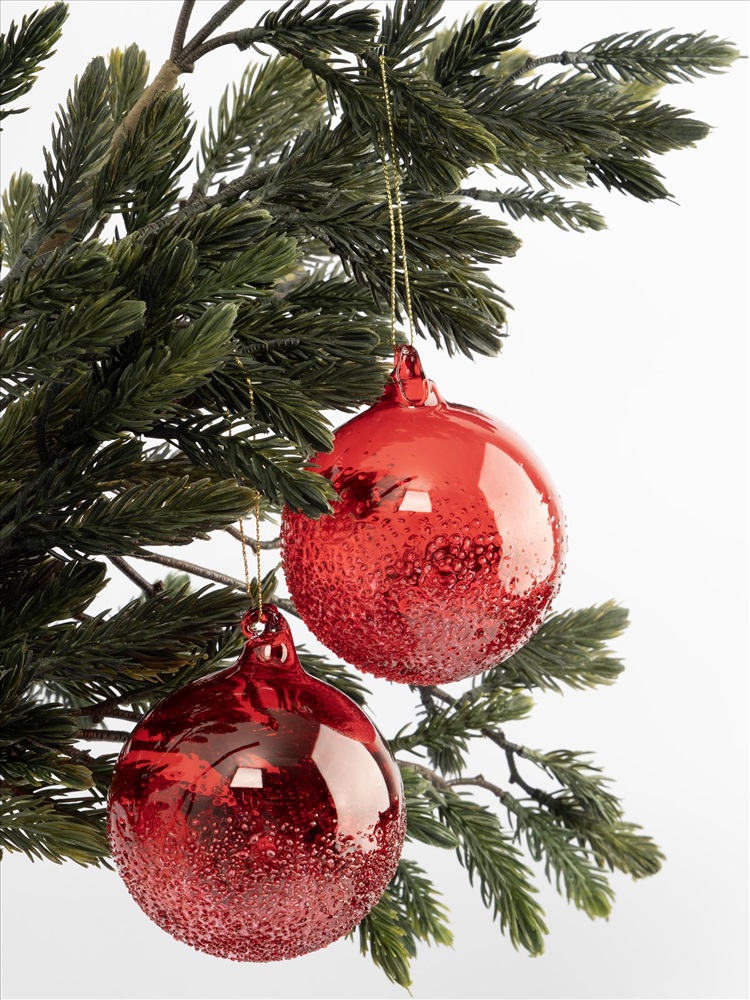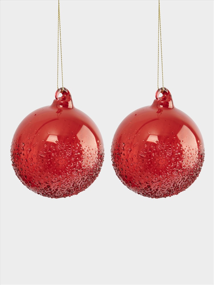Игрушка елочная, 2 шт, 8 см, стекло, красная, Шар с изморозью, New year