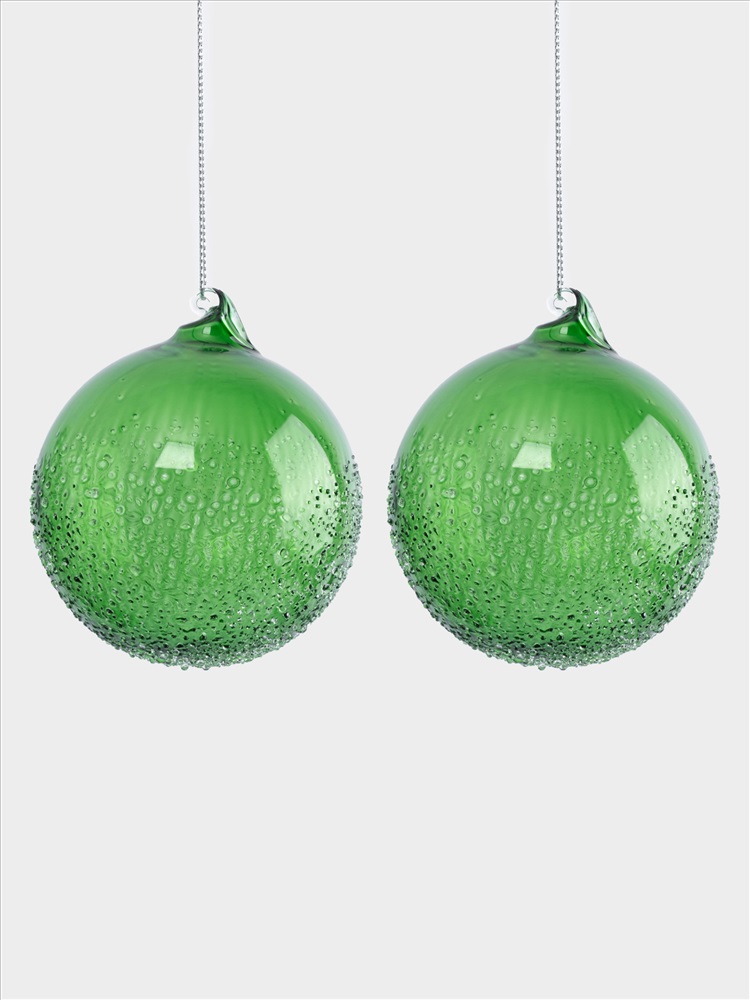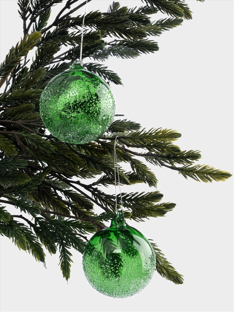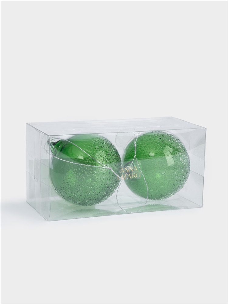 Игрушка елочная, 2 шт, 8 см, стекло, зеленая, Шар с изморозью, New year