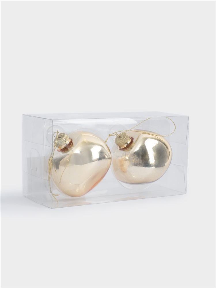 Игрушка елочная, 2 штуки. Размер: 8 см. Материал: стекло. Протирать мягкой сухой тканью. Беречь от механических повреждений.