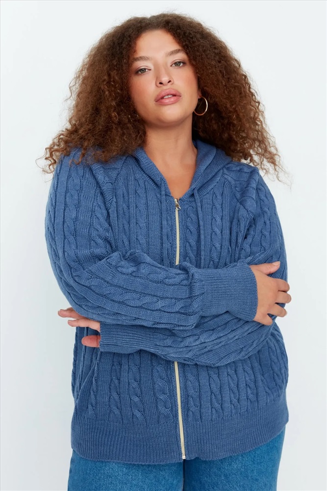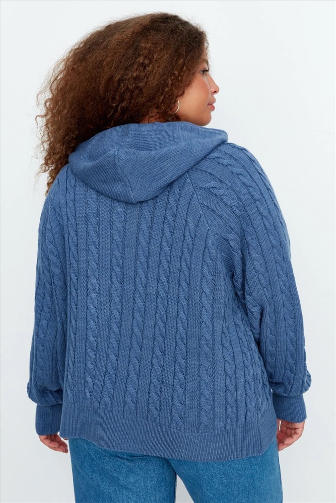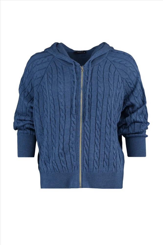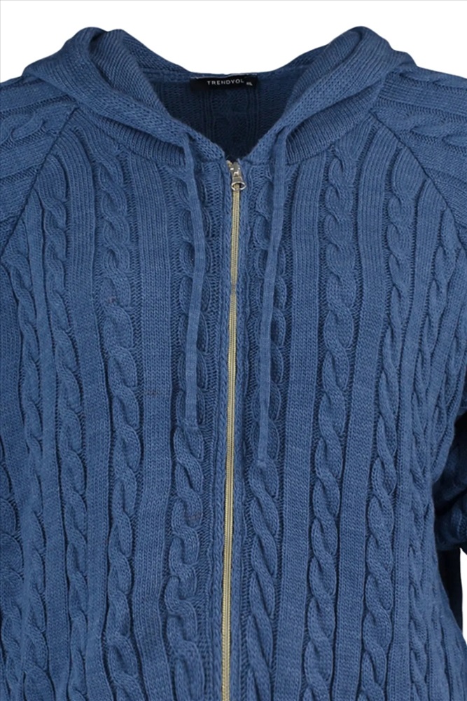 Indigo Kapüşonlu Fermuarlı Triko Hırka TBBAW23AV00051