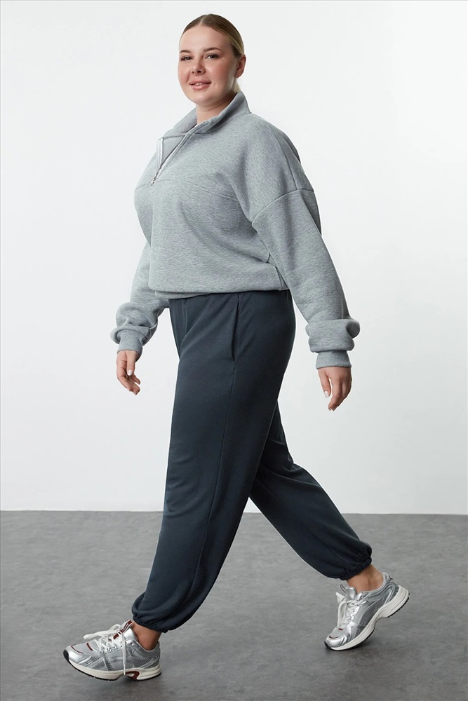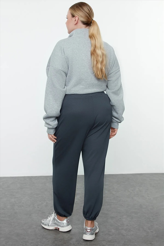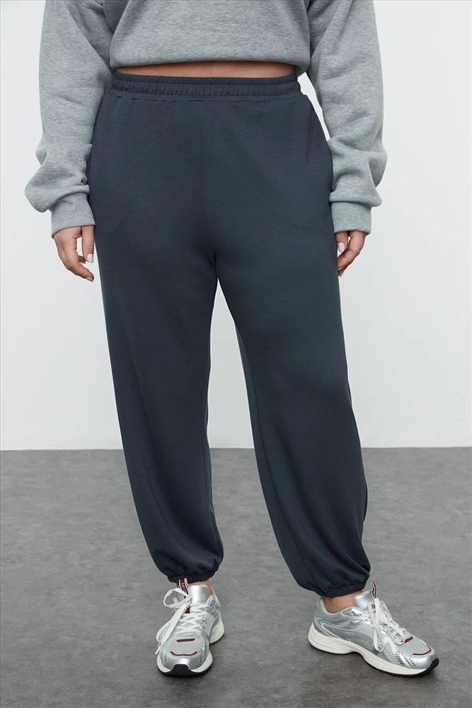 Indigo Loose Jogger Dökümlü Yumuşak Tuşeli Örme Büyük Beden Eşofman Altı TBBAW25AJ00003