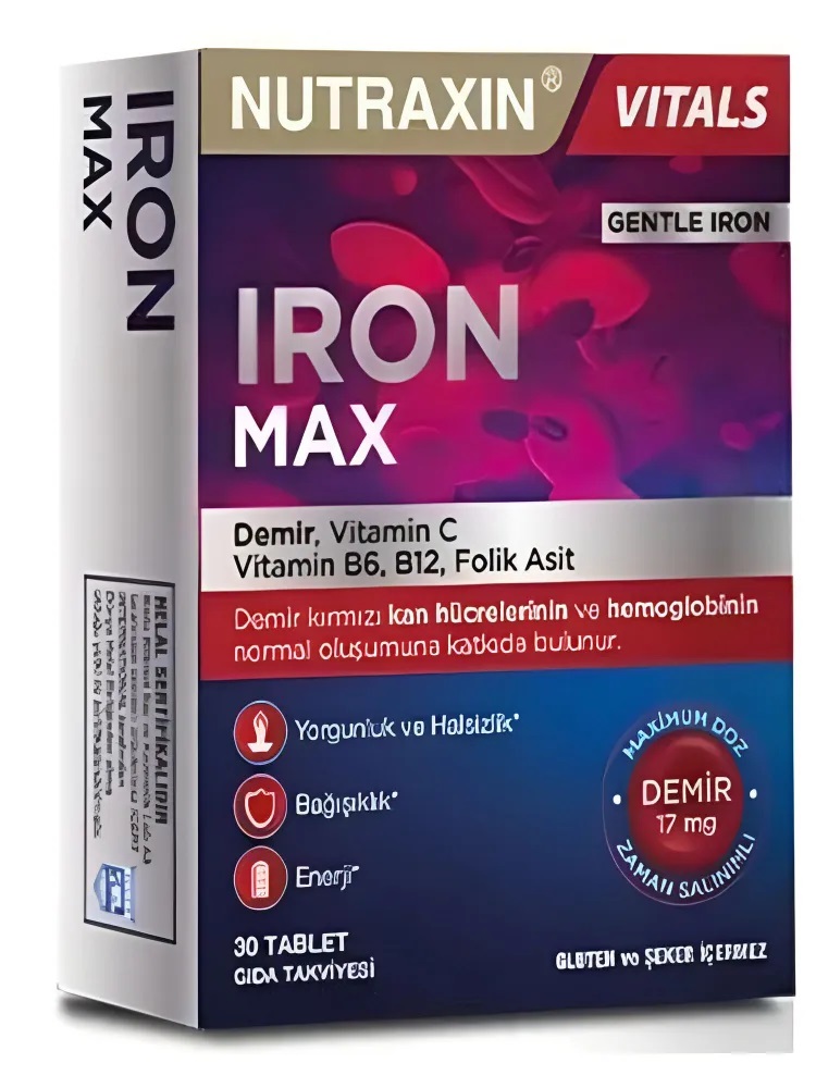 Nutraxin Iron Max 17 мг 30 таблеток – мощная поддержка уровня железа! Препарат Nutraxin Iron Max специально разработан для удовлетворения суточной потребности организма в железе и поддержки его функций. Эта добавка, содержащая 17 мг железа, помогает снизить риск анемии, повысить уровень энергии и укрепить иммунную систему. Его формула, обогащенная витаминами B6, B12 и C, обеспечивает лучшее усвоение железа организмом. Содержит 17 мг железа Помогает снизить риск анемии Поддерживает выработку энергии, снижает утомляемость Укрепляет иммунную систему ✔ Формула обогащена витаминами B6, B12 и C Поддерживайте уровень железа для здоровой жизни!
