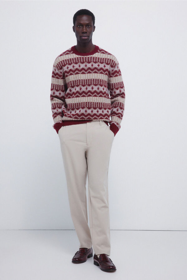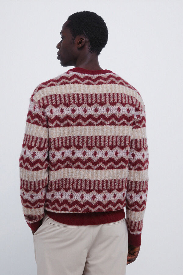 Jersey grueso estructura en hilatura fantasía aspecto lana. Cuello redondo. Bajos y Puños en canalé.