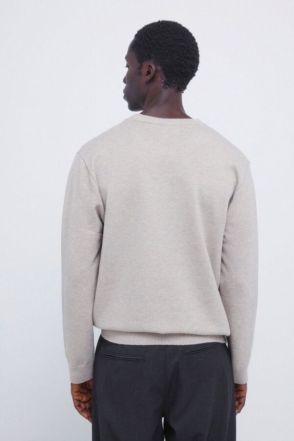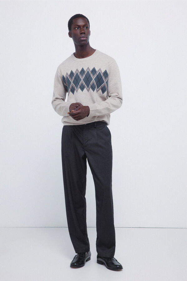 Jersey jacquard en tejido mixto reciclado.Cuello redondo. Puños y bajos en canalé.