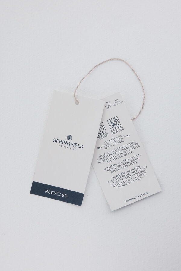 Jersey grueso en hilatura especial torzal de algodón reciclado y poliéster reciclado . Bajos y puños en canalé. Etiqueta decorativa simil piel en el pecho.