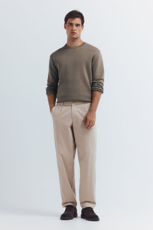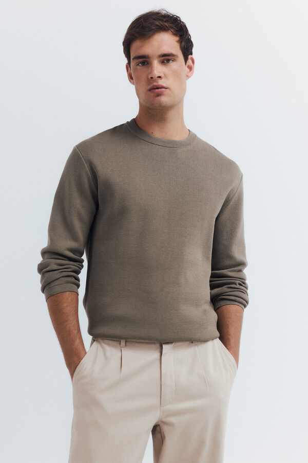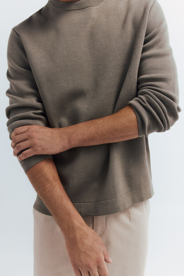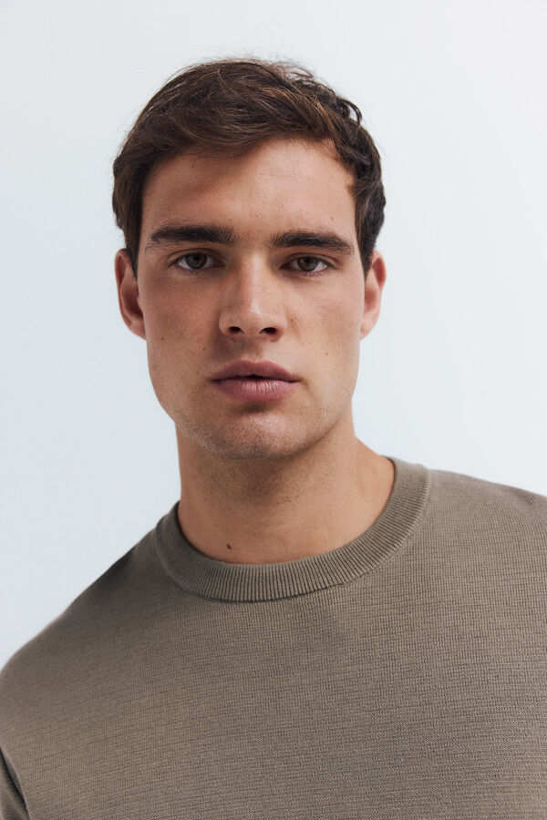 Jersey en 100% algodón. Tejido liso. Cuello redondo. Puños y bajos liso.