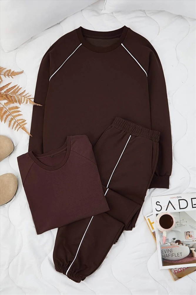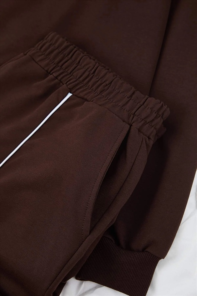 Kahverengi 3'lü Paket T-shirt Sweatshirt Eşofman Altı Takım TBBAW26TS00010