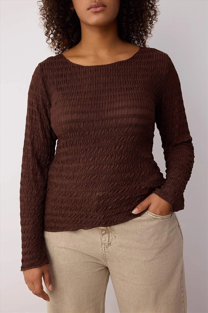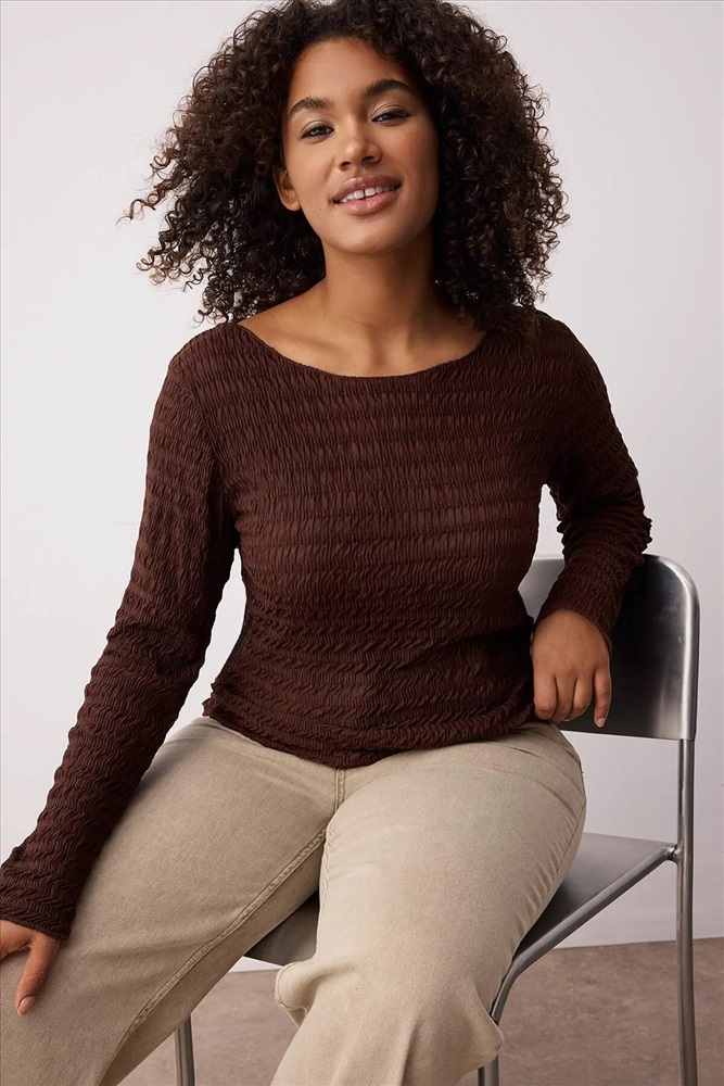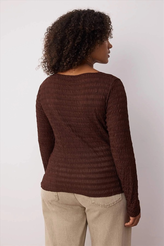 Kahverengi Fitted/Vücuda Oturan Dokulu Tül Esnek Örme Büyük Beden Bluz TBBAW26AF00030