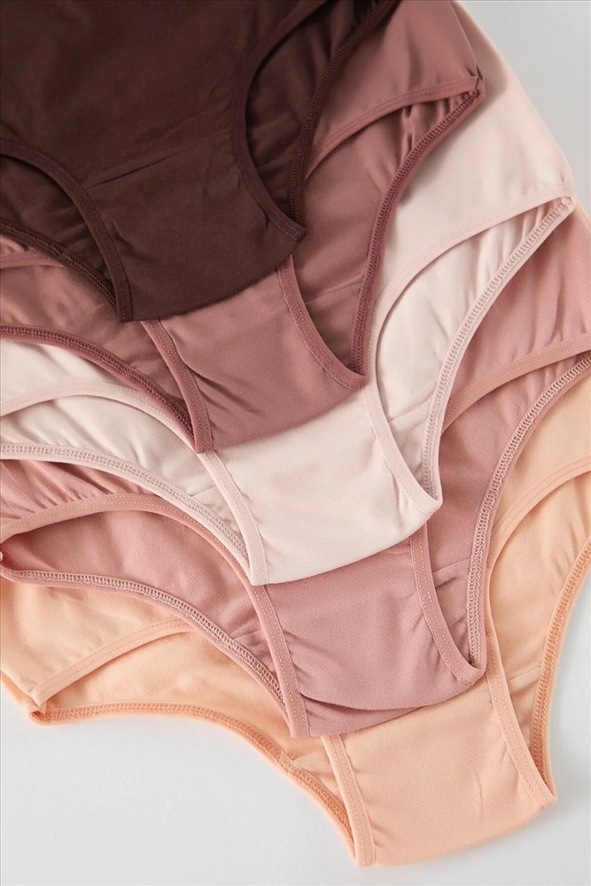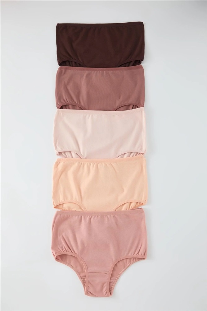 Kahverengi-Çok Renkli 5'li Paket Pamuklu Yüksek Bel Klasik Büyük Beden Külot TBBSS25CM00013