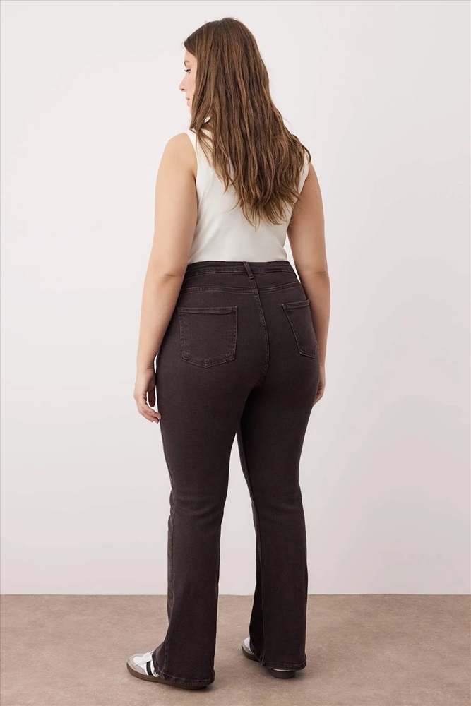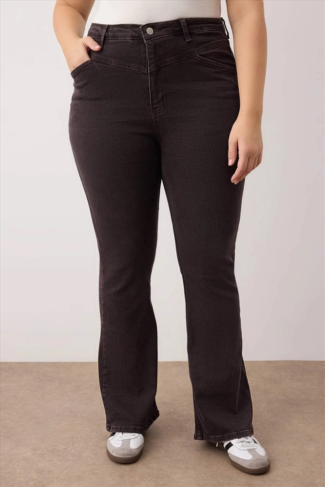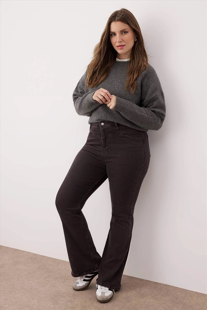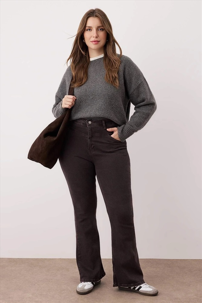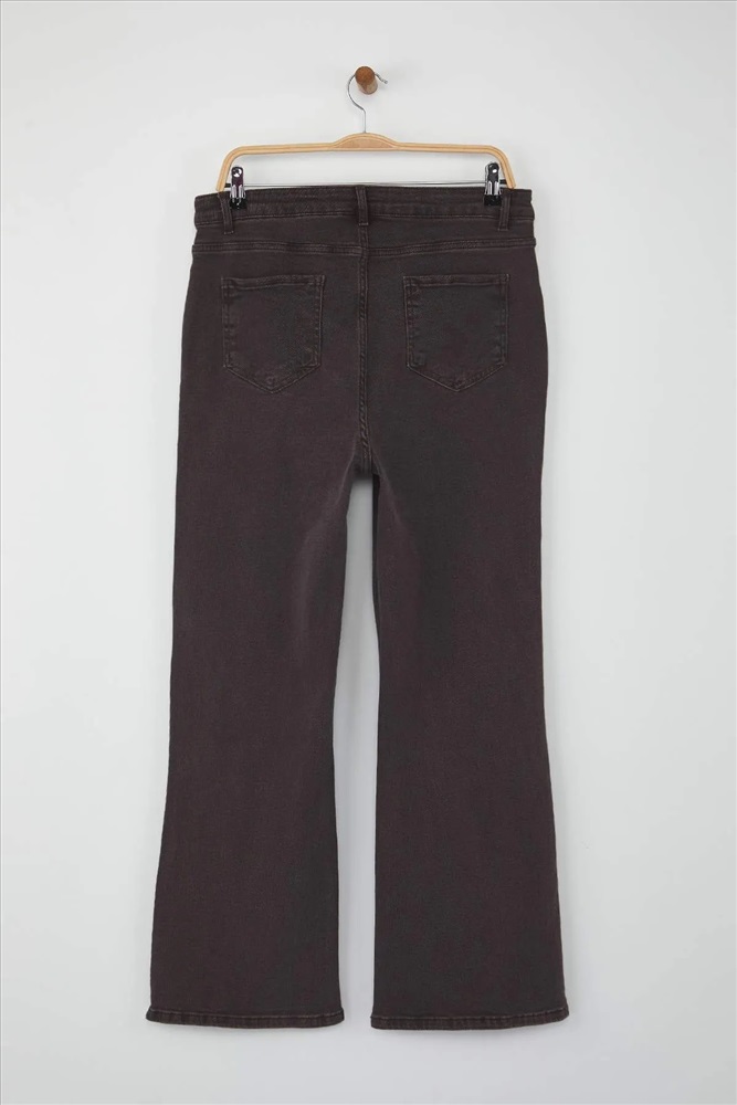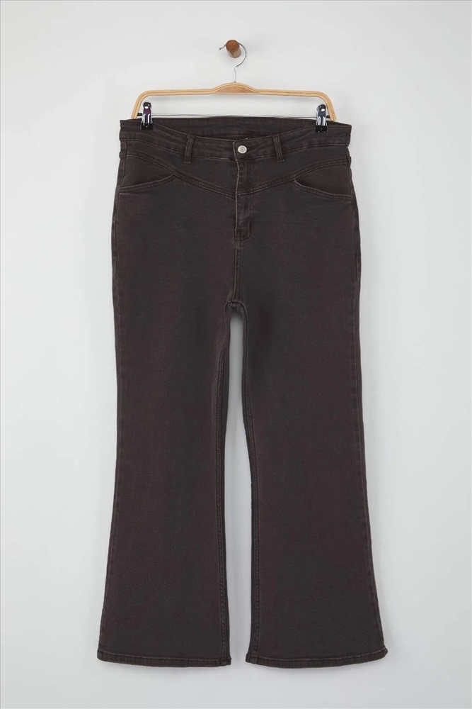 Kahverengi Yüksek Bel Comfort Dikiş Detaylı İspanyol Paça Flare Fit Jeans TBBSS24CJ00003