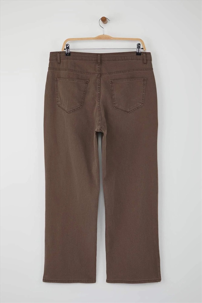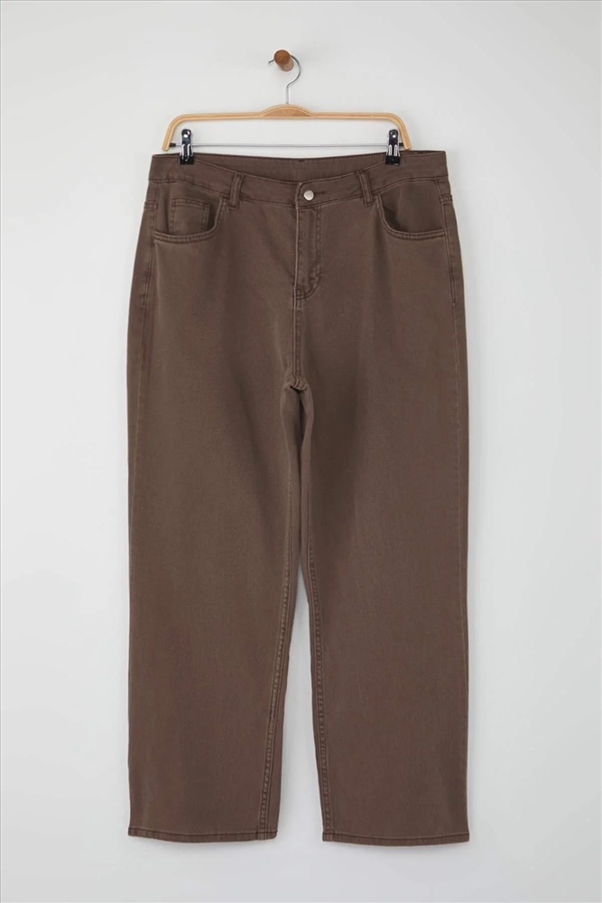 Kahverengi Yüksek Bel Straight Fit Denim Büyük Beden Jeans TBBSS24CJ00051
