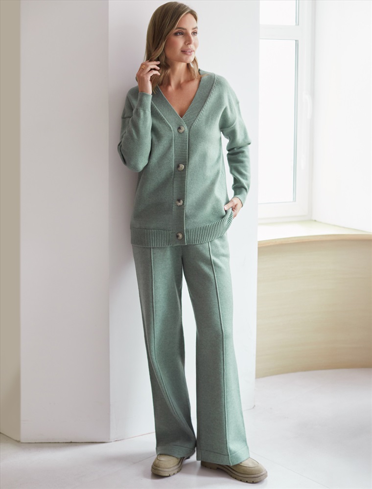 Размер товара на первом фото: 42 Удлиненный кардиган выполнен из мягкой меланжевой пряжи с добавлением кашемира. Классическая модель с глубоким вырезом прямого силуэта идеально сочетается как с брюками, юбками, джинсами, так и с платьями. Застежка на пуговицы. Изделие очень приятное к телу, совершенно не колется и отлично сохраняет тепло. Сочетается в костюме с брюками D38.013, D38.012 и юбкой D36.016 Комментарии к товару