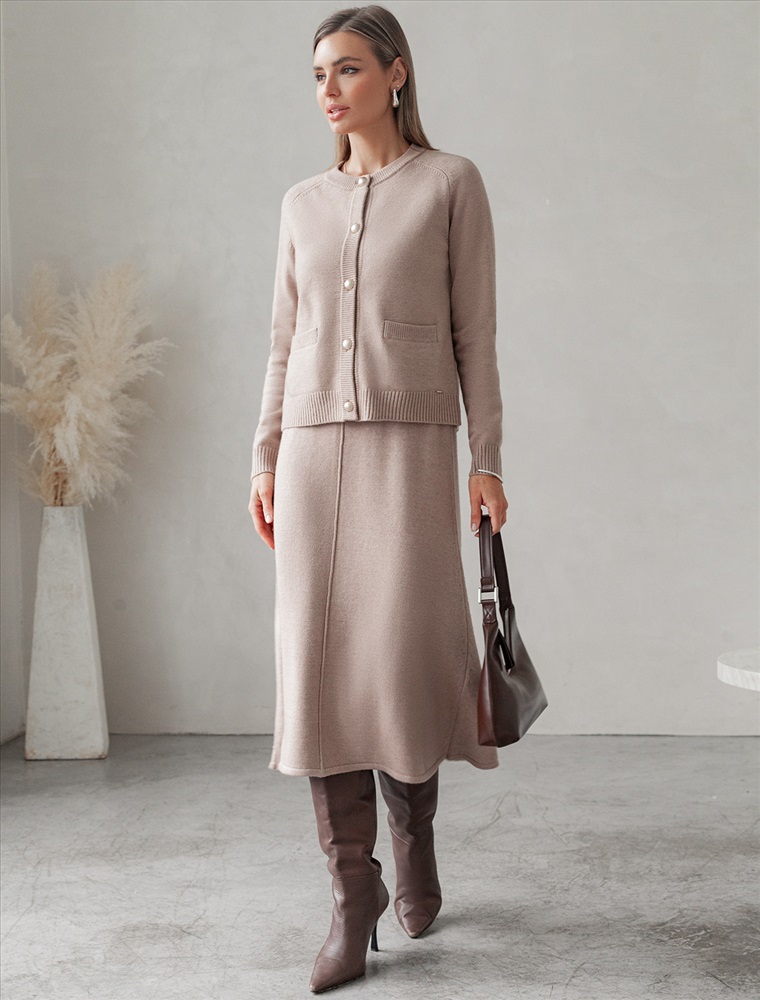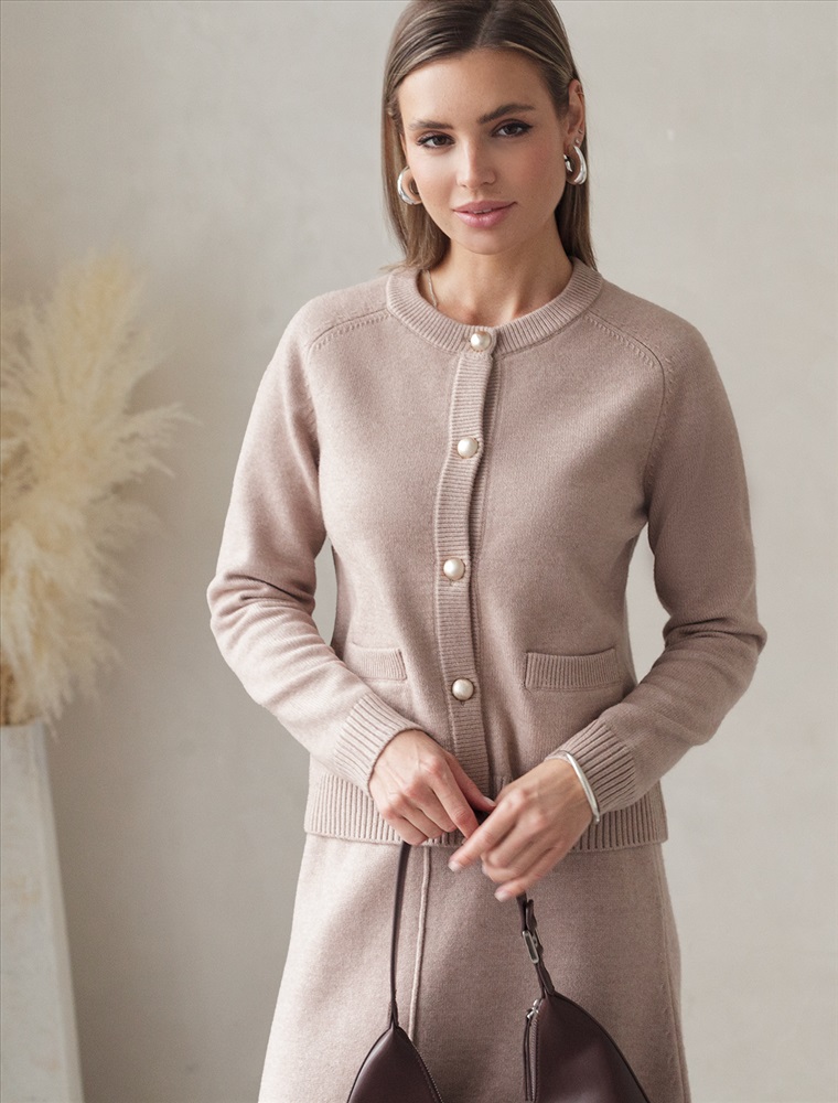 Размер товара на первом фото: 42 Кардиган выполнен из мягкой меланжевой пряжи с добавлением кашемира. Модель прямого силуэта гармонично впишется в любой образ с брюками, юбками и джинсами. Застежка на пуговицы в жемчужно-золотистом оттенке. Изделие очень приятное к телу, совершенно не колется и отлично сохраняет тепло. Сочетается в костюме с брюками D38.013, D38.012 и юбкой D36.016 Комментарии к товару