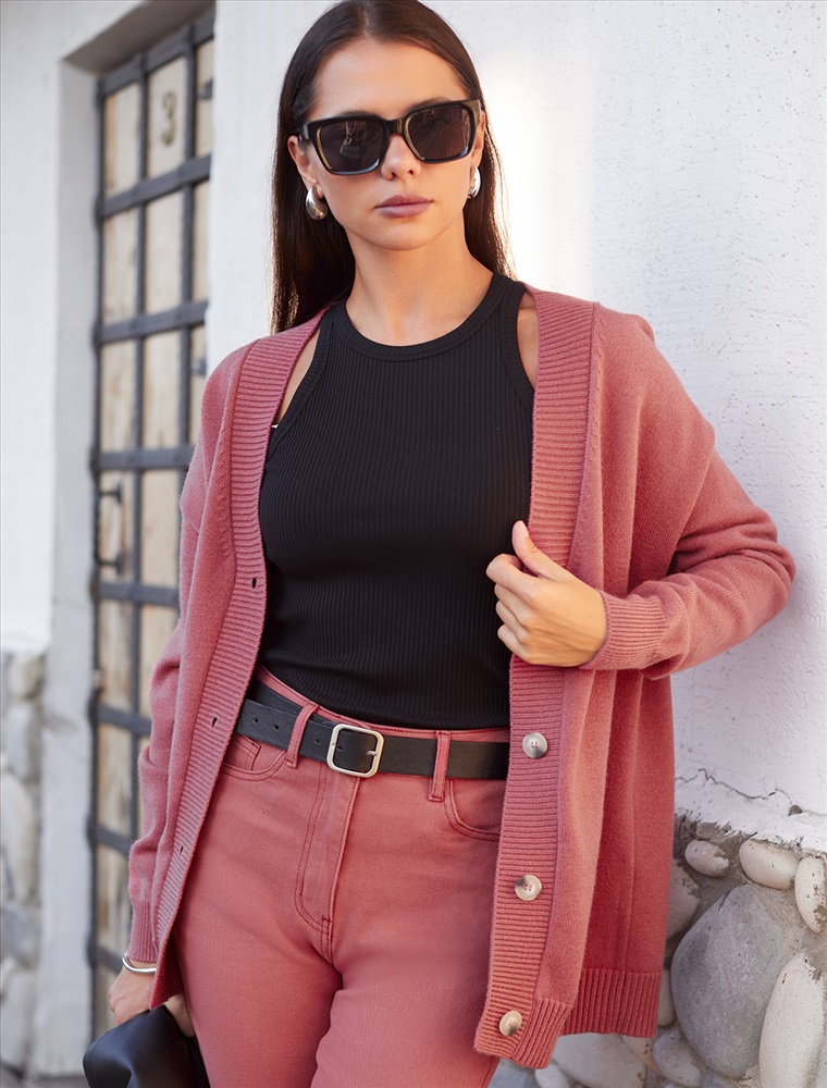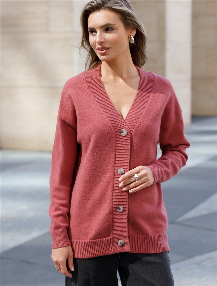 Размер товара на первом фото: 42 Удлиненный кардиган выполнен из мягкой меланжевой пряжи с добавлением кашемира. Классическая модель с глубоким вырезом прямого силуэта идеально сочетается как с брюками, юбками, джинсами, так и с платьями. Застежка на пуговицы. Изделие очень приятное к телу, совершенно не колется и отлично сохраняет тепло. Сочетается в костюме с брюками D38.013, D38.012 и юбкой D36.016