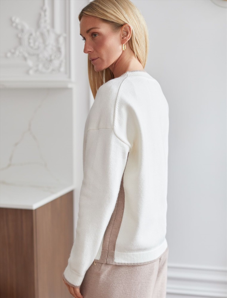Кардиган выполнен из мягкой меланжевой пряжи с добавлением кашемира. Модель прямого силуэта дополнена контрастными вставками, что позволяет выбрать брюки в тон основного изделия, либо канта. Роскоши добавляют фактурные золотистые пуговицы. Изделие очень приятное к телу, совершенно не колется и отлично сохраняет тепло. Сочетается в костюме с брюками D38.013, D38.012 и юбкой D36.016