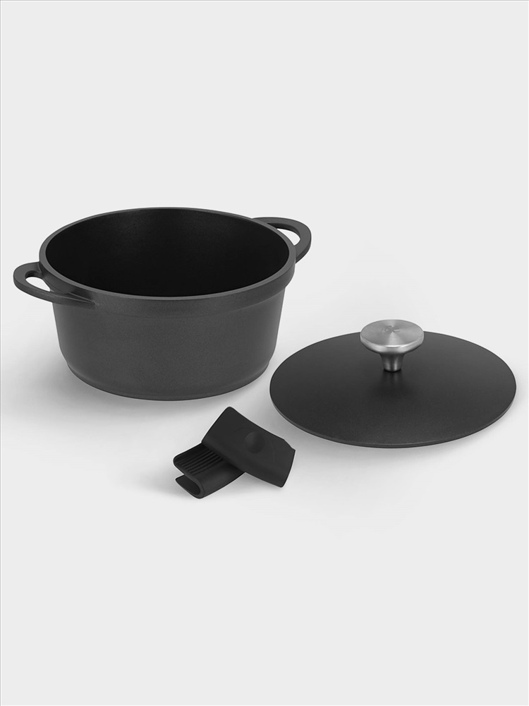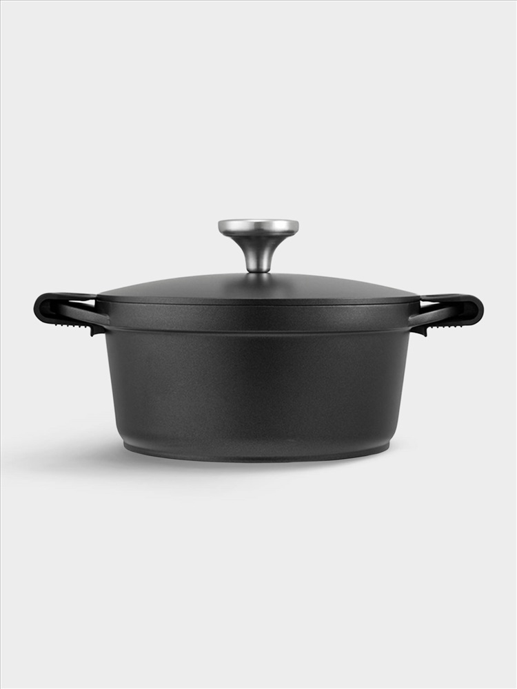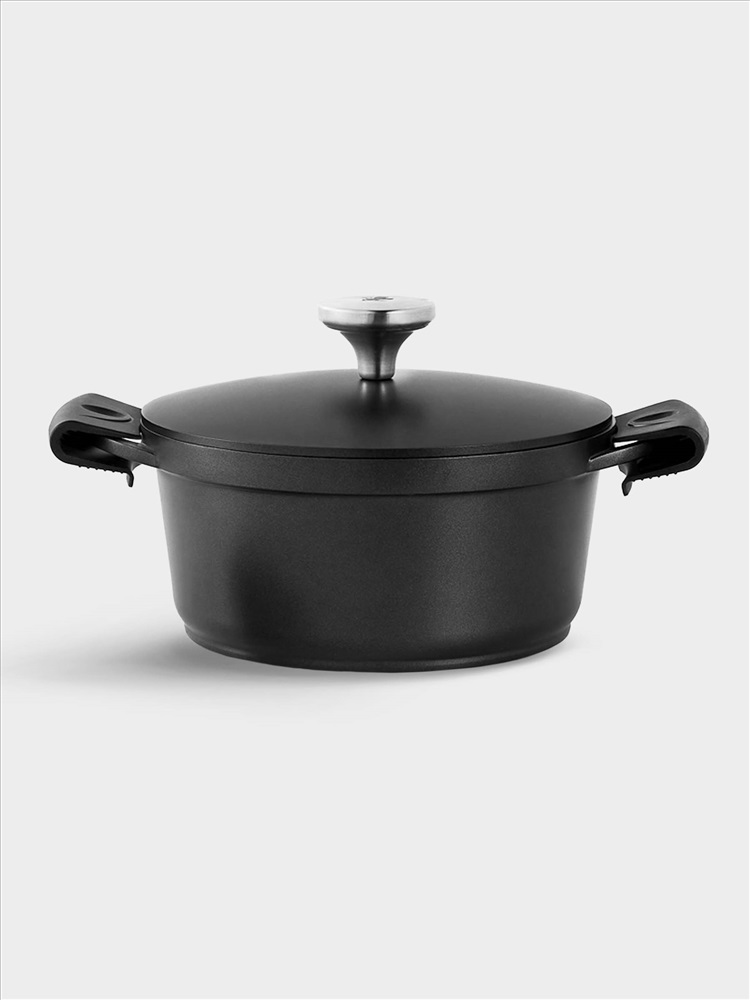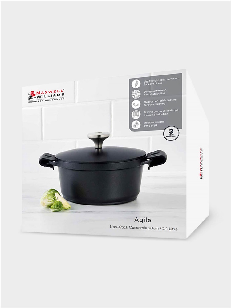 Кастрюля, 20 см, 2,4 л, с крышкой, с покрытием, алюминий, черная, Agile. Материал: алюминий (литой) с антипригарным покрытием. Можно мыть в посудомоечной машине.