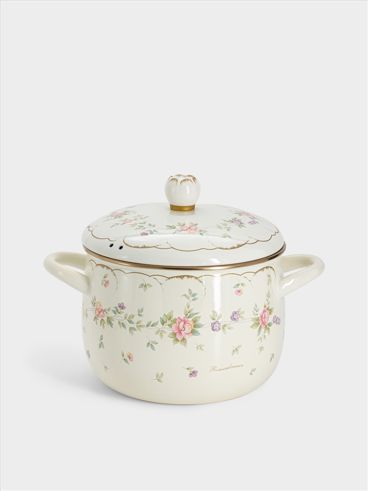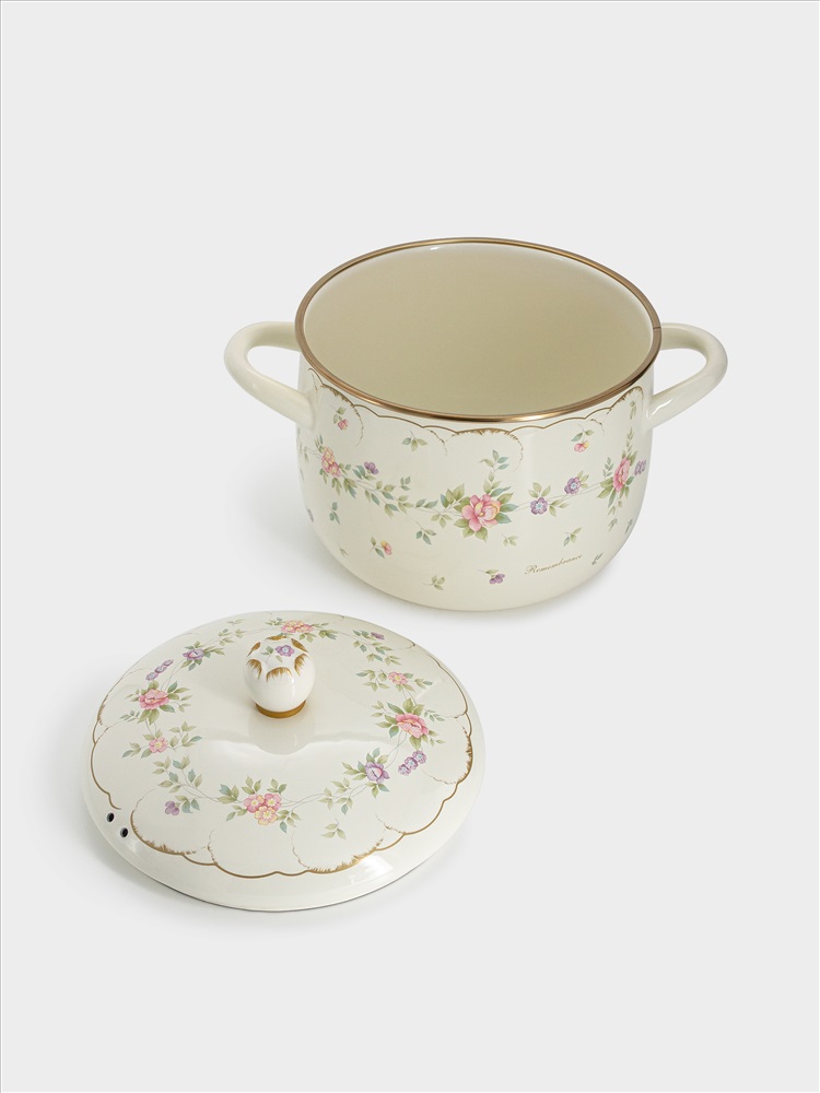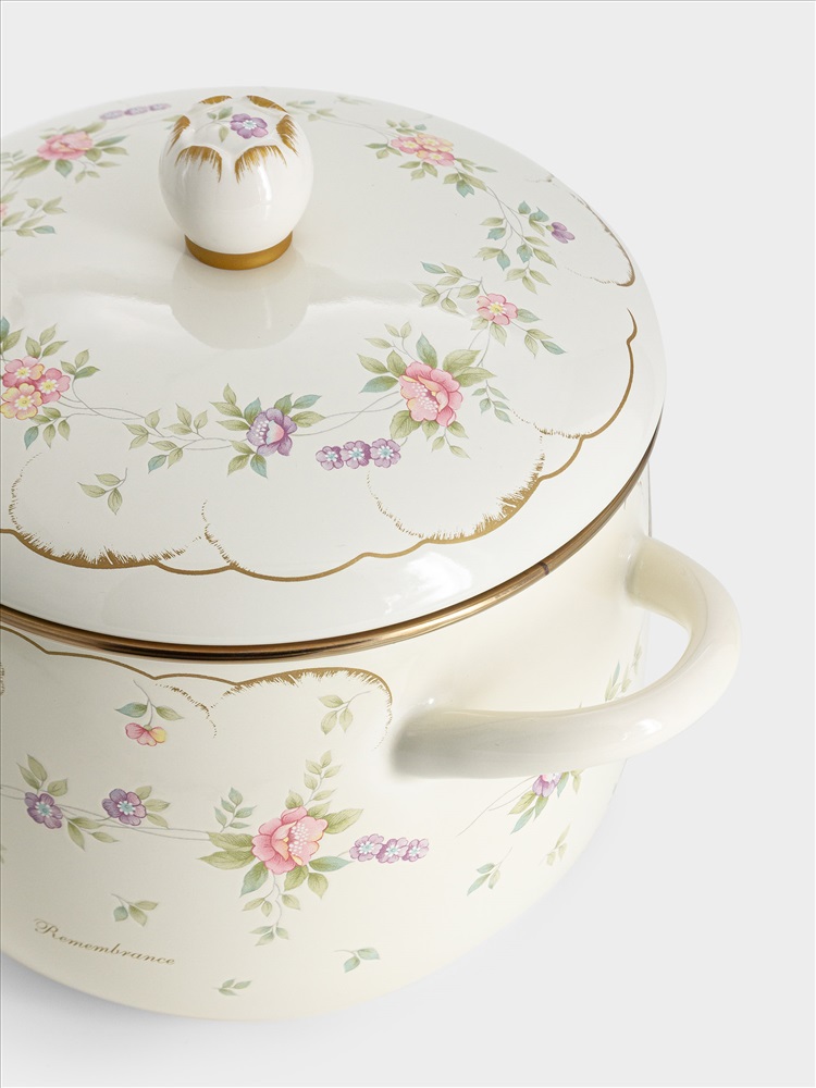 Кастрюля, 20 см, 3,8 л, с крышкой, с покрытием, сталь, молочная, Цветы, Remembrance. Материал: сталь эмалированная. Пригодна для всех типов плит. Мыть теплой водой без использования абразивных материалов и в посудомоечной машине. Не использовать в СВ.