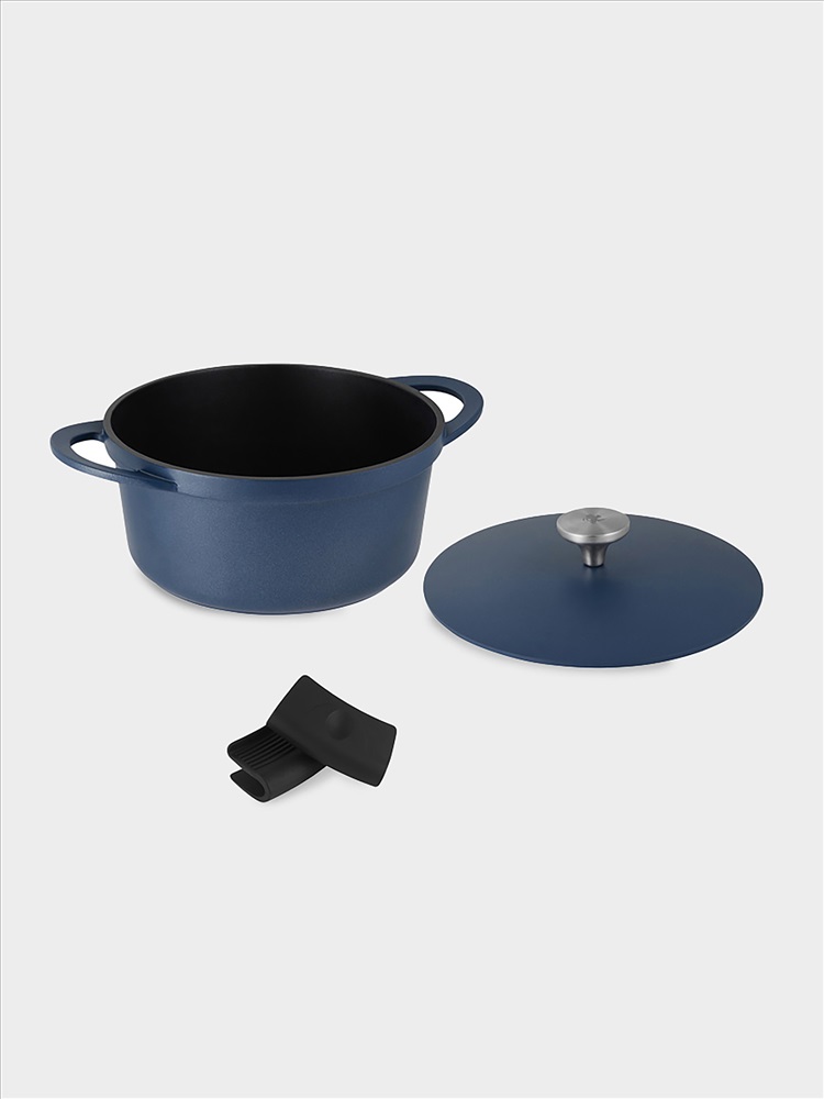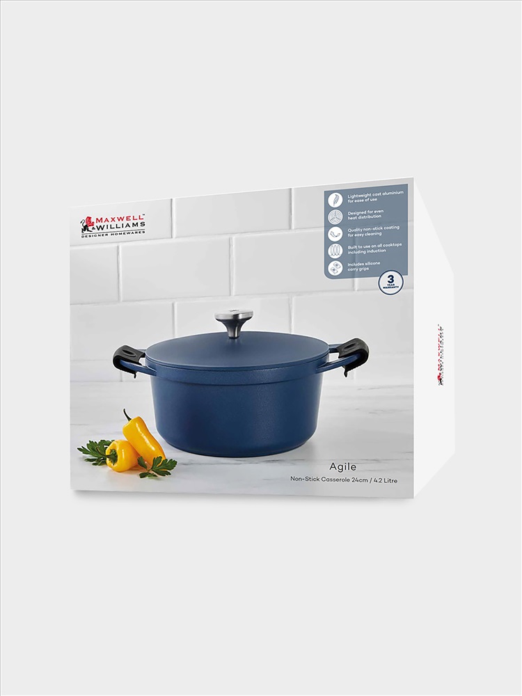 Кастрюля, 24 см, 4,2 л, с крышкой, с покрытием, алюминий, синяя, Agile. Материал: алюминий (литой) с антипригарным покрытием. Можно мыть в посудомоечной машине.