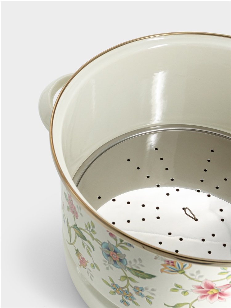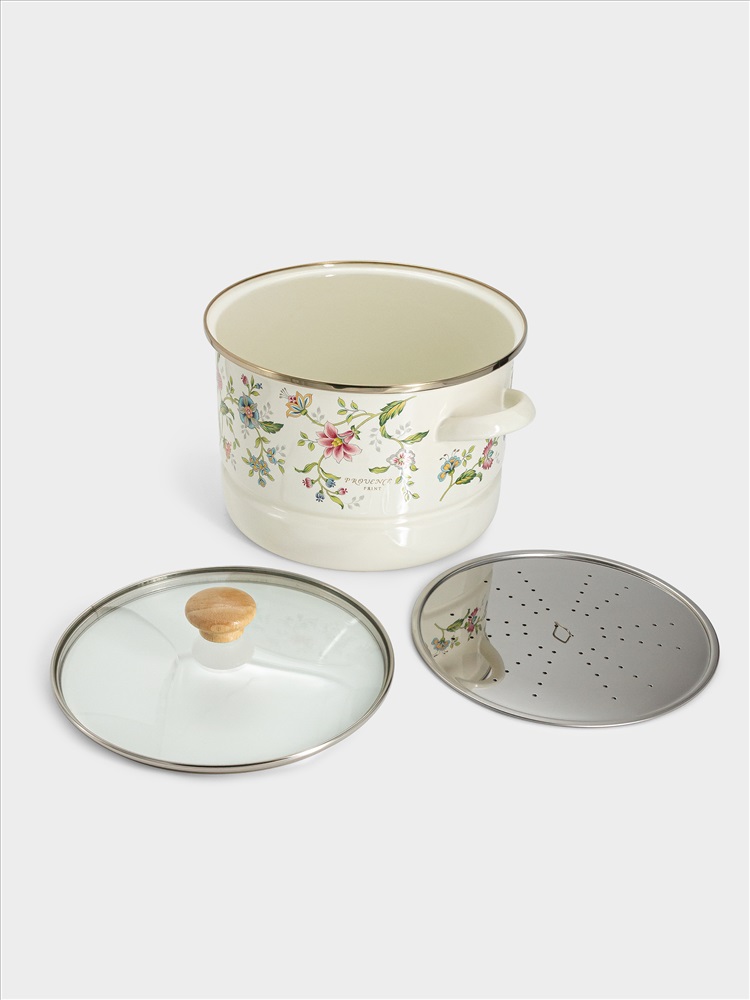 Кастрюля, 24 см, 6.5 л, со вставкой-пароваркой, эмалированная, с крышкой стеклянной, Прованс