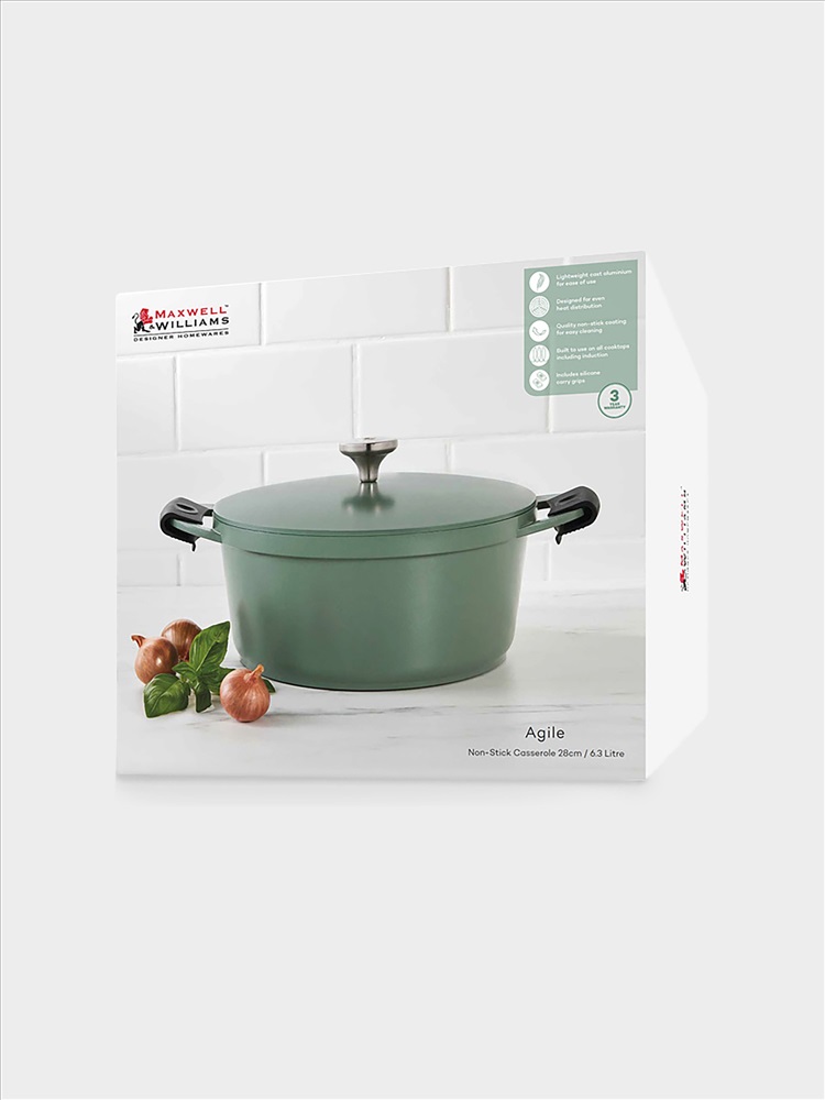 Бренд: MAXWELL & WILLIAMS Кастрюля, 28 см, 6,3 л, с крышкой, с покрытием, алюминий, зеленая, Agile. Материал: алюминий (литой) с антипригарным покрытием. Можно мыть в посудомоечной машине.