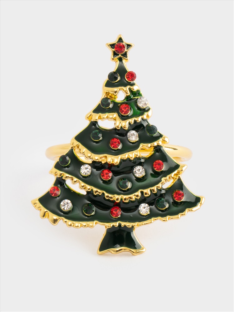 Кольцо для салфеток, 6 см, металл/стразы, золотистое, Новогодняя ель, New year