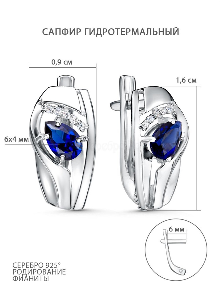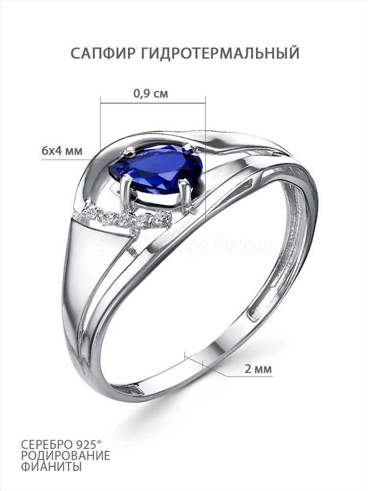 Кольцо из серебра с гидротермальным сапфиром и фианитами родированное 1-5534-001