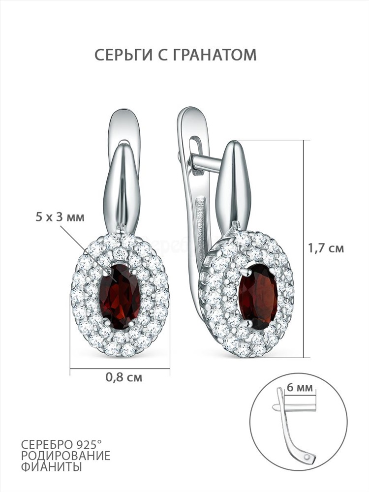 Кольцо из серебра с гранатом и фианитами родированное К50081р404