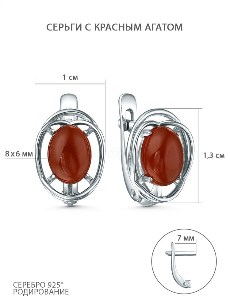 Кольцо из серебра с красныйм агатом родированное 1340395149-31