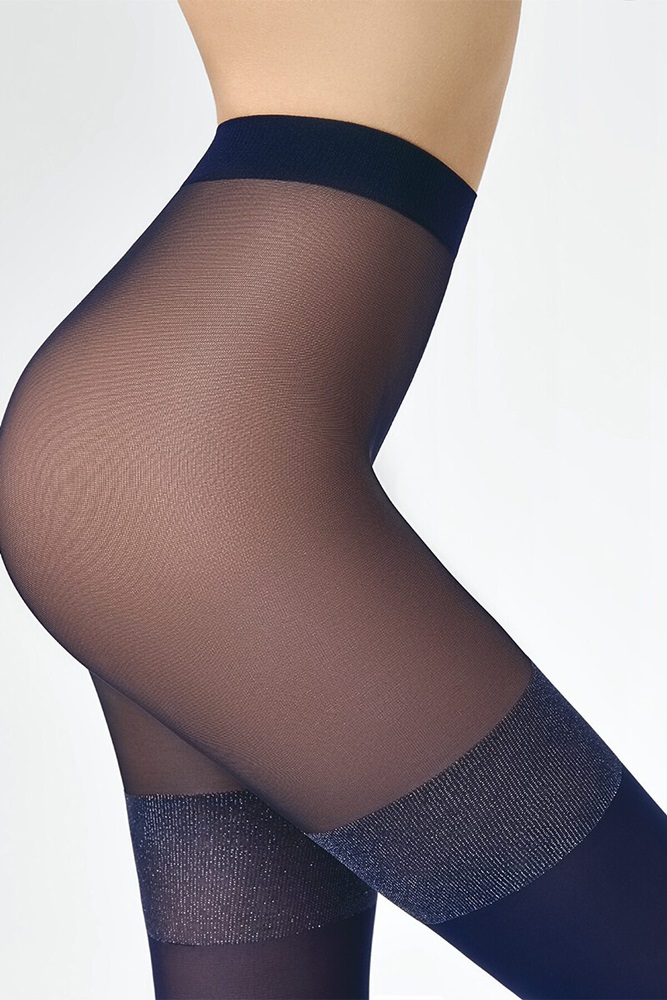 ID товара: 1058520 Состав: 84% Полиамид, 12% Эластан, 2% Люрекс, 2% Хлопок Сезон: Демисезон Основная ткань: Полиамид Вид колготок: Фантазийные Плотность: 70 den Страна бренда: Италия Страна производства: Узбекистан Женские эластичные колготки 70 den имитирующие чулки-ботфорты, с сияющим люрексом на кайме. Премиальный Nylon 6.6, входящий в состав изделия, способствует идеальному облеганию, обладает высокой гигроскопичностью и подходит даже для самой чувствительной кожи. Плоские швы и гигиеничная хлопковая ластовица создают дополнительный комфорт. Идеальный выбор для тех, кто любит экспериментировать со стилем и дополнять образ необычными акцентными деталями. Комментарии к товару