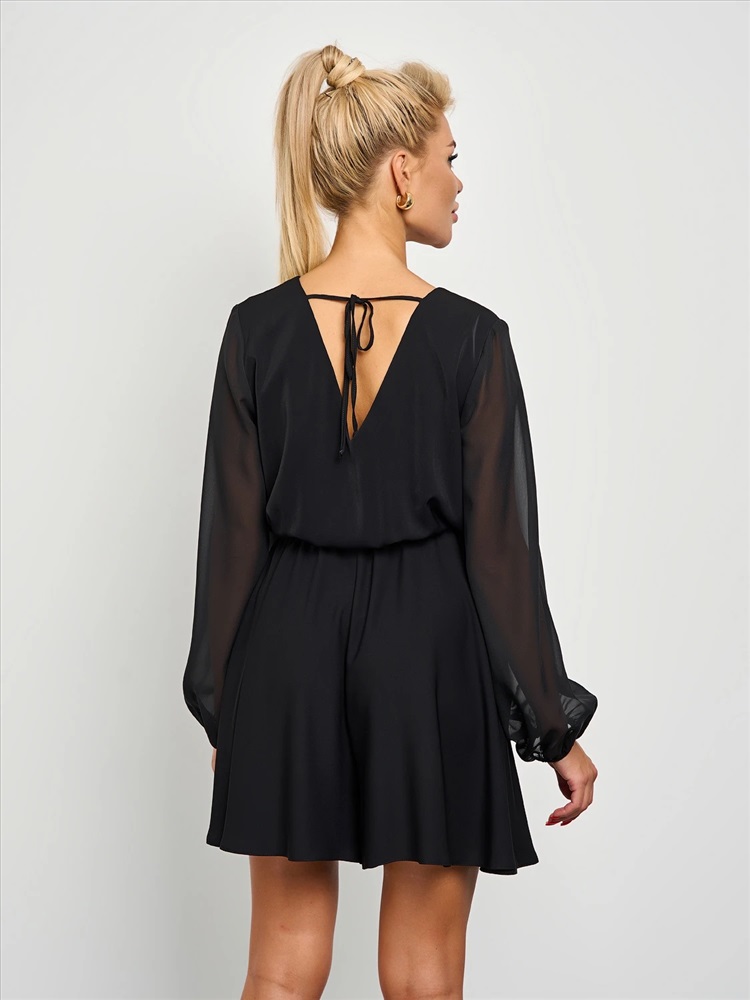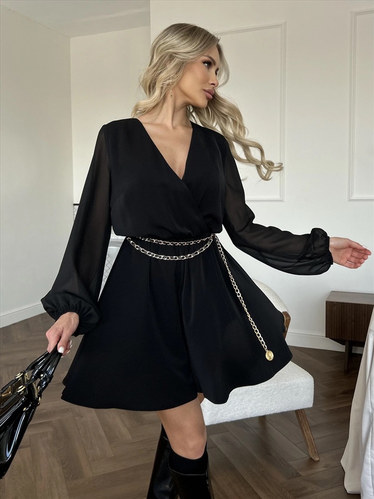 Имитация запаха по переду верха. Талия отрезная, на резинке. Верх с подкладкой из основной ткани. Втачной длинный рукав из шифона. Пояс не идет в комплекте. Комментарии к товару