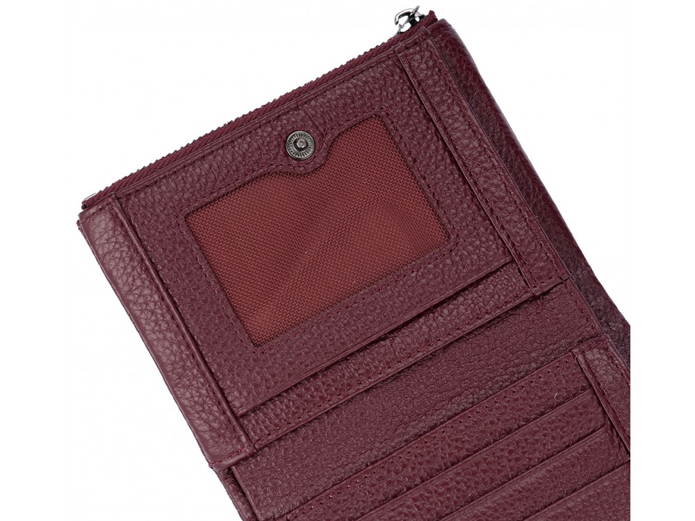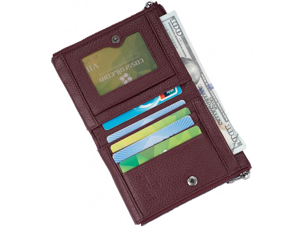 Большое количество отделений, поможет держать все содержимое в порядке: купюры, банковские, дисконтные карты, монеты.