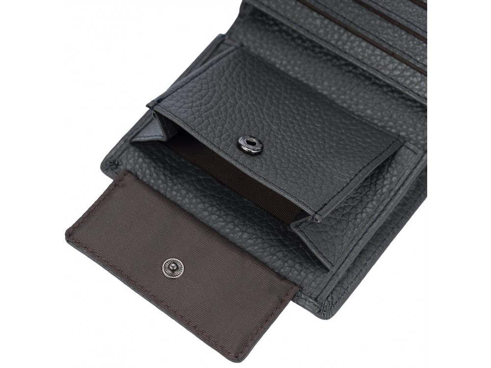 Большое количество отделений, поможет держать все содержимое в порядке: купюры, банковские, дисконтные карты, монеты.