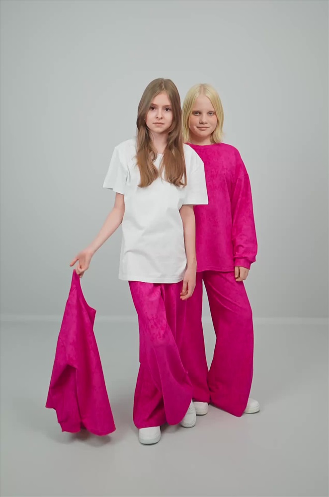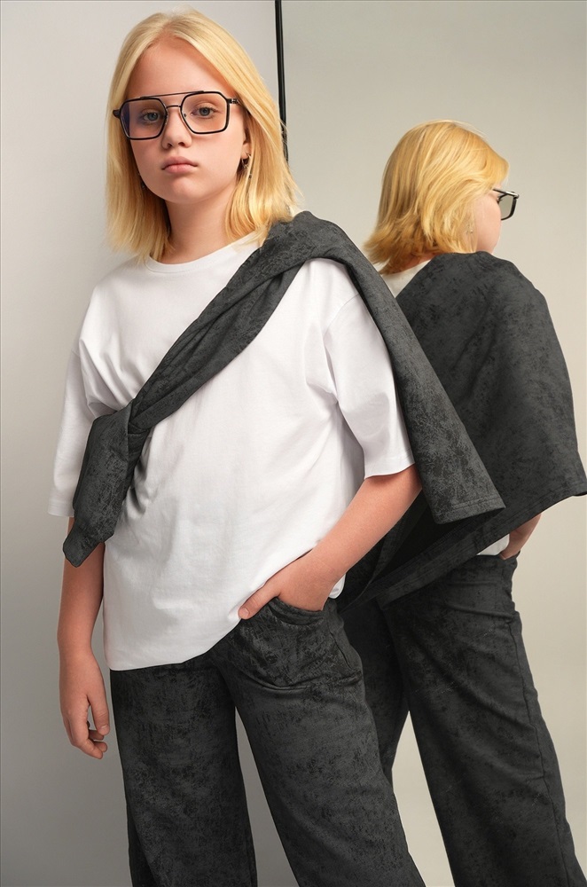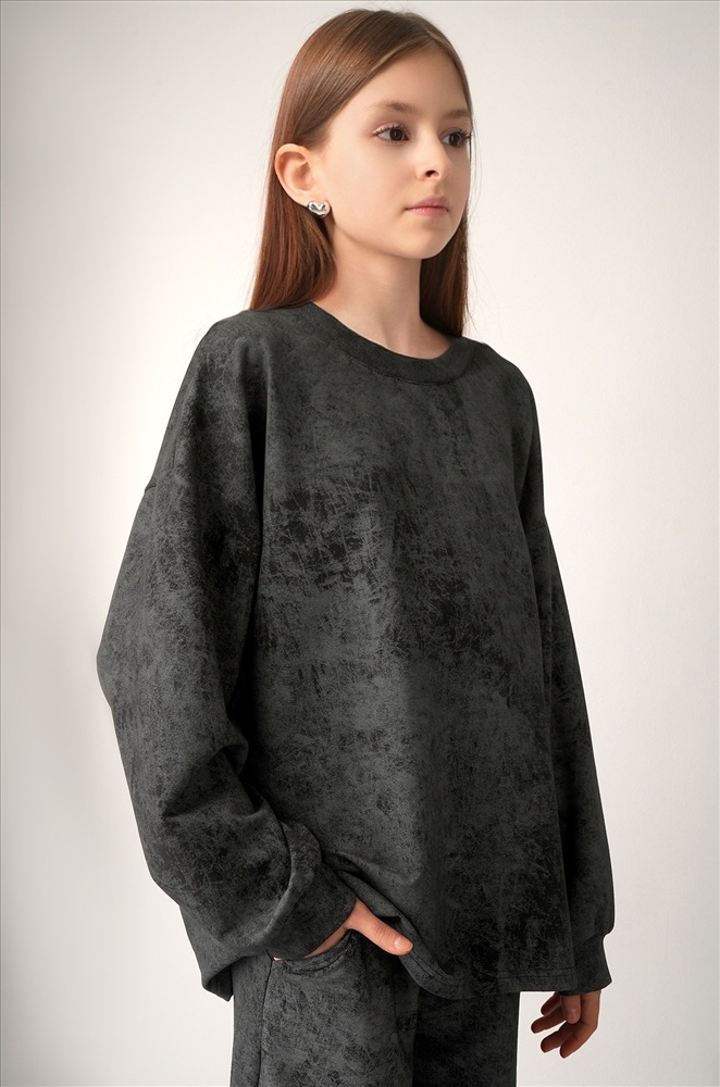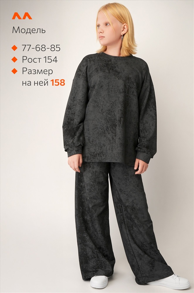 Детский костюм для девочки и девочки подростка с вареным эффектом — стиль без усилий. Глубокий тон и свободный силуэт создают выразительный повседневный образ, а плотный футер даёт ощущение уюта в прохладную погоду.