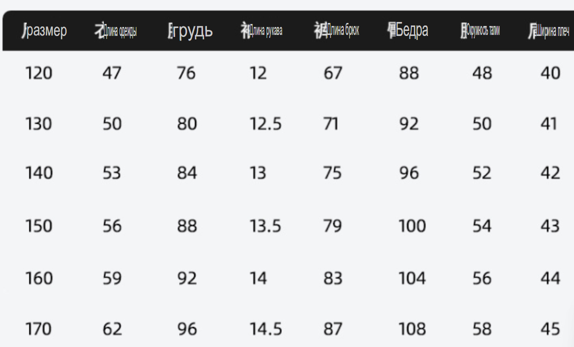 Размер: 120, 130, 140, 150, 160, 170