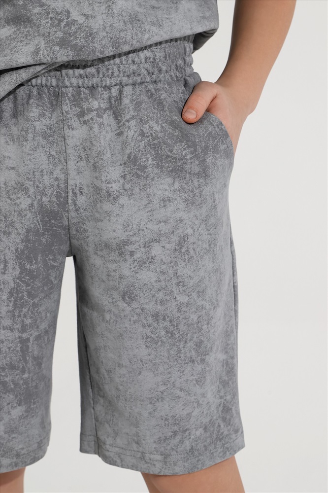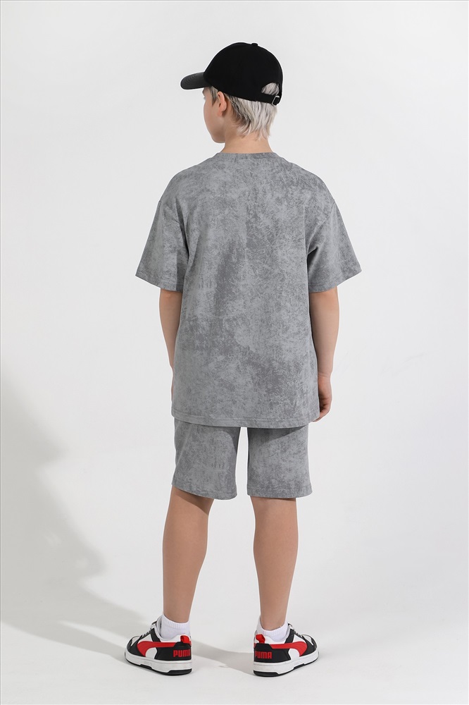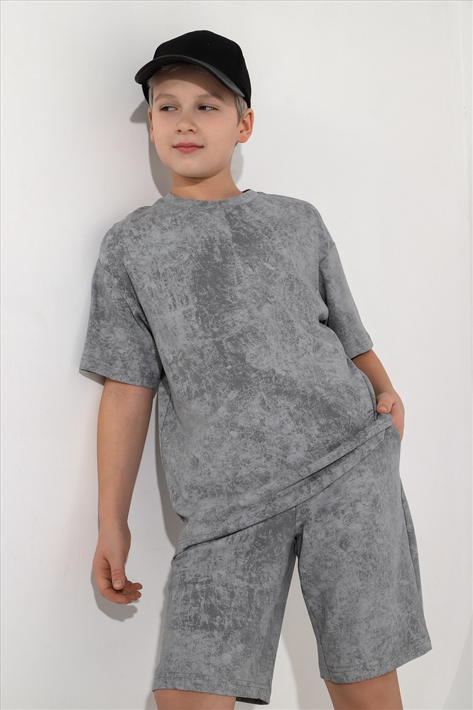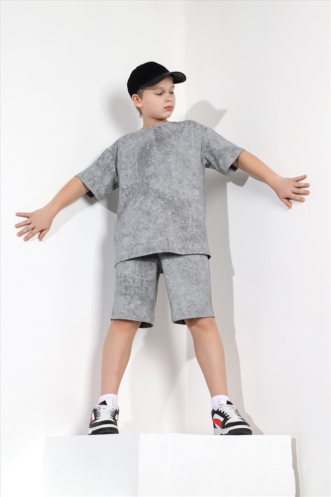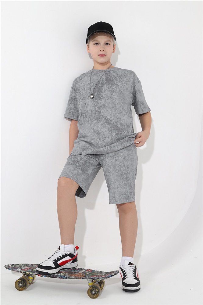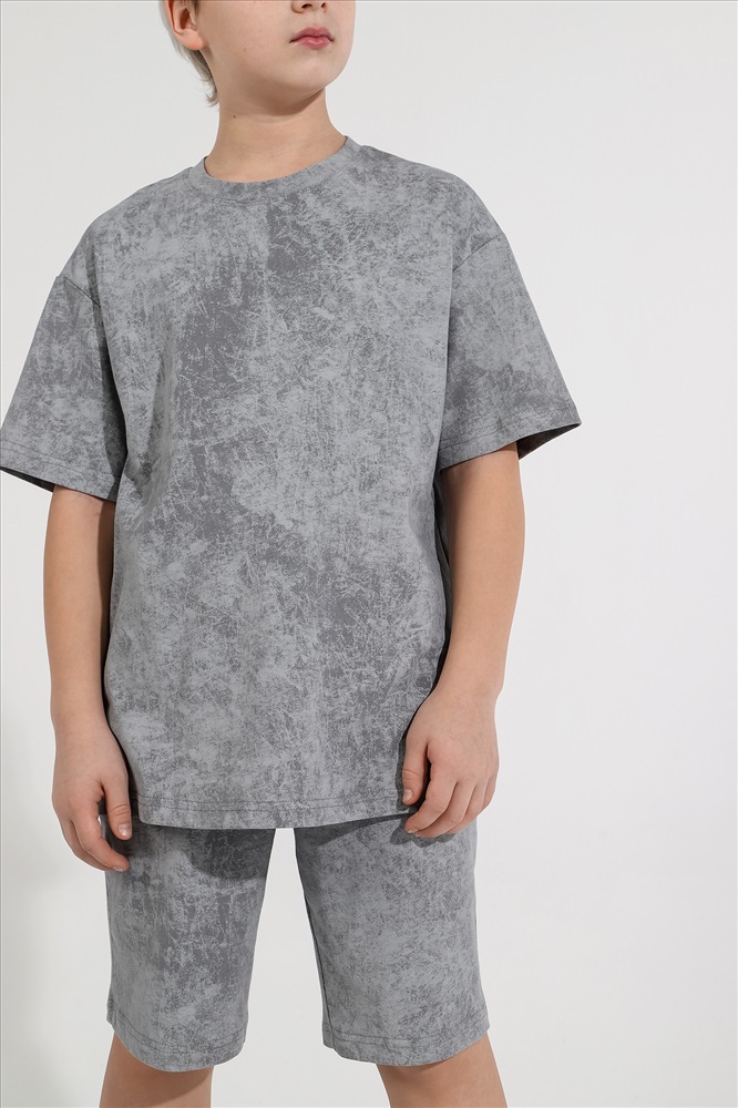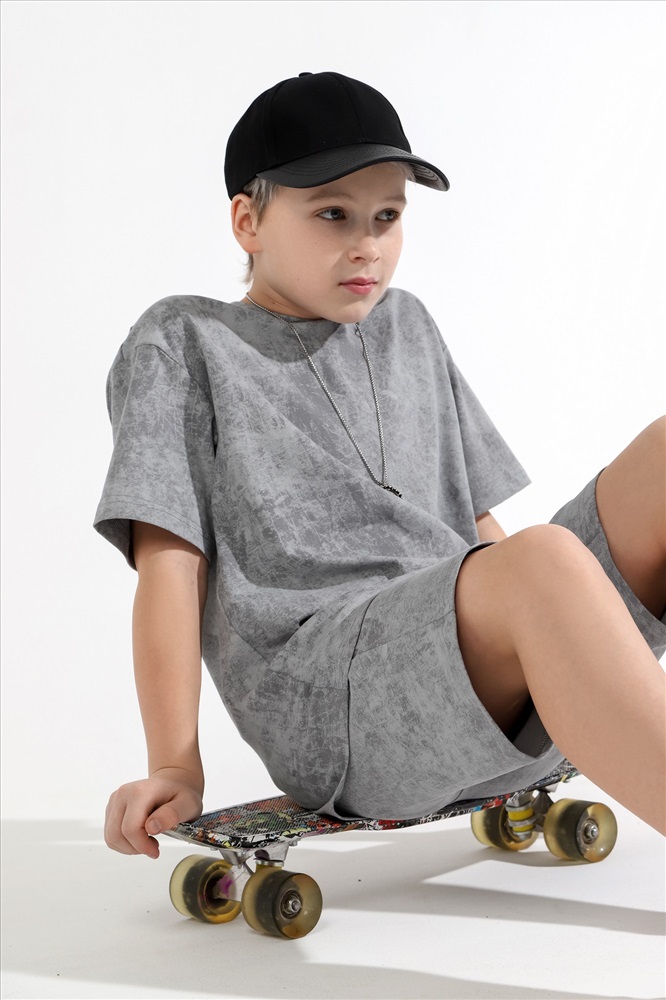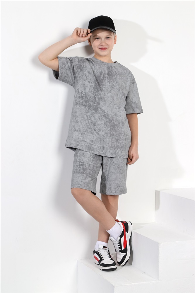 Ткань: Кулирка Кулирка - это самое гладкое и тонкое трикотажное полотно из чистого хлопка. С лицевой стороны ткань «кулирка» выглядит как «вертикальные косички», орнамент изнаночной стороны напоминает «кирпичную кладку». Свойства кулирного трикотажа- воздухопроницаемость, гигроскопичность, не теряя своей формы, практически не тянется в длину и хорошо растягивается в ширину, не образует складки. Костюм для мальчика, состоящий из футболки и шорт. Футболка - свободного покроя, короткими втачными рукавами и горловиной овальной формы, обработанной втачной планкой. По шву втачивания планки настрочена двойная отделочная строчка. Шорты - удлиненные, с карманами в боковых швах, на притачном поясе с эластичной тесьмой внутри.