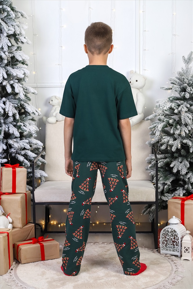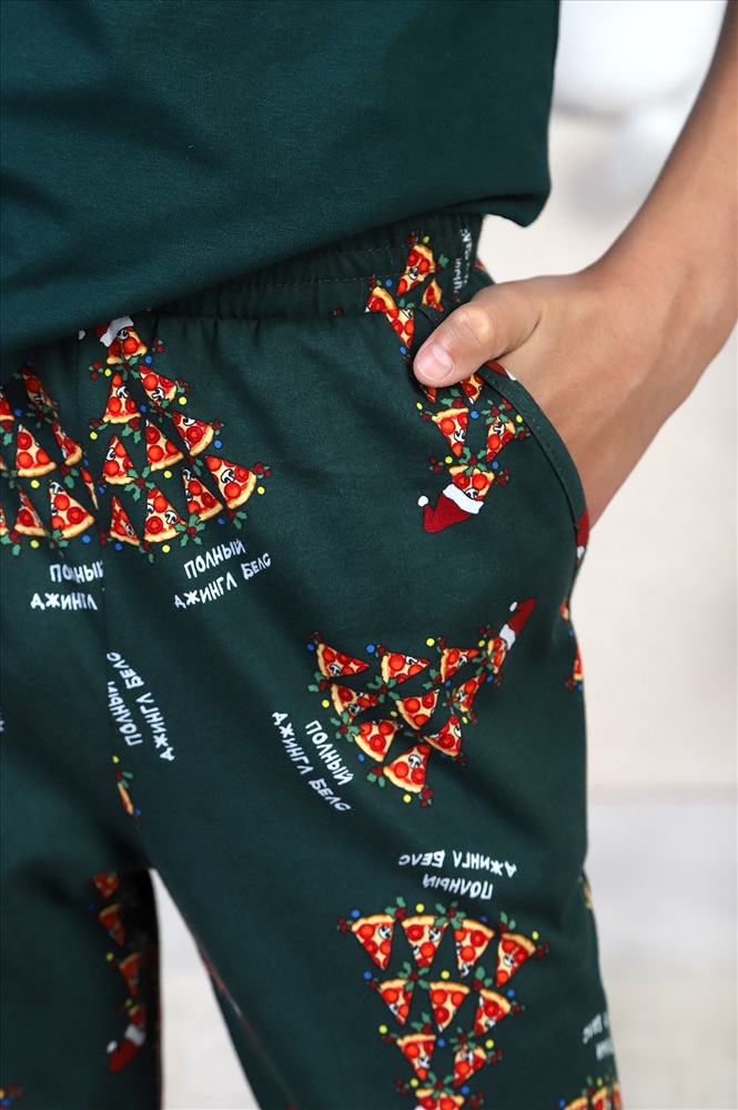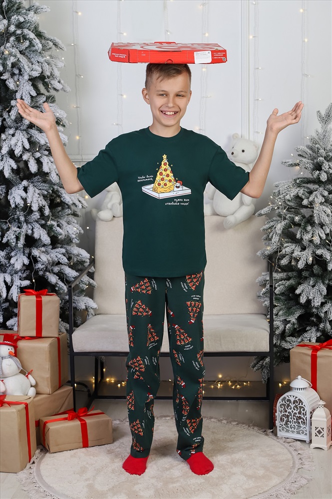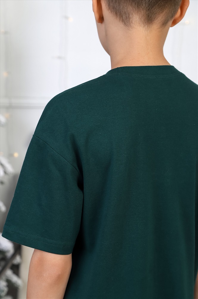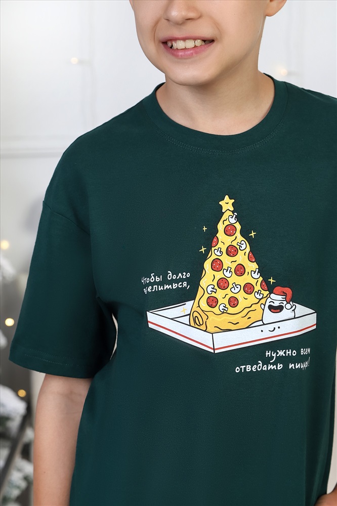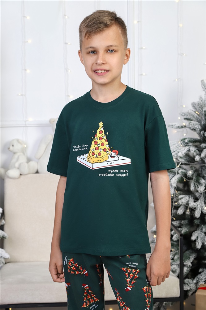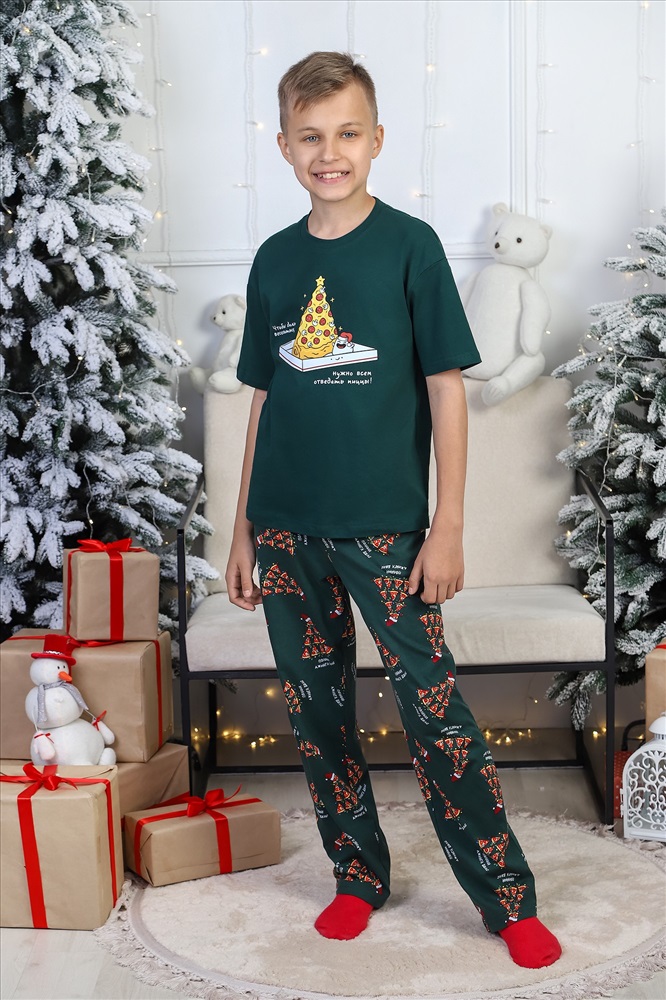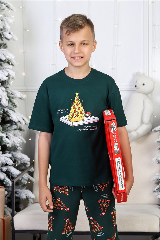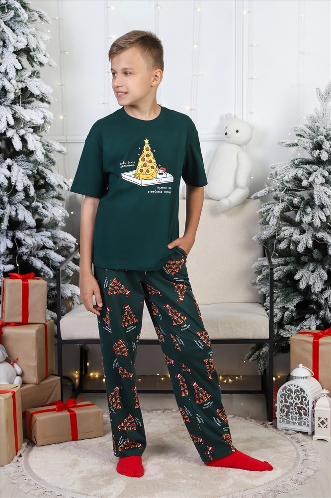 Костюм для мальчика. Футболка с принтом; модель свободная, со спущенной линией плеч. Брюки из полотна эксклюзивного дизайна, прямые, с боковыми карманами, на притачном поясе с отстроченной эластичной тесьмой.