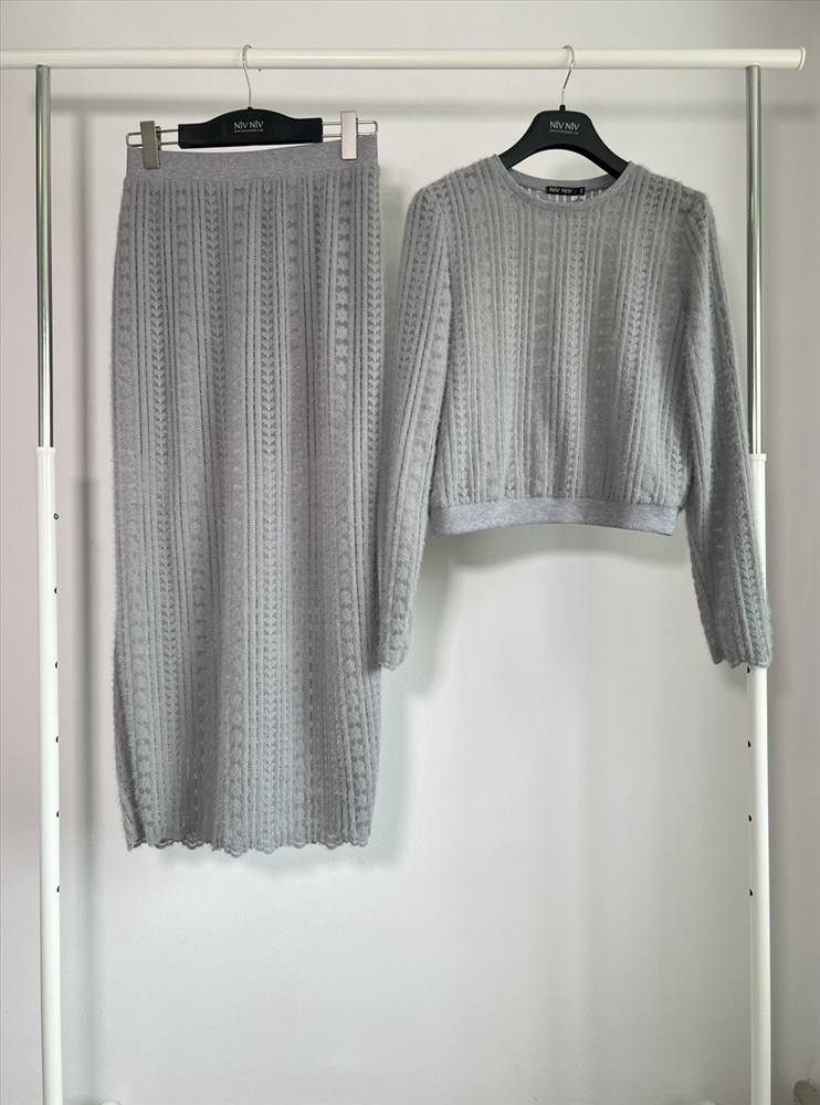 Длина джемпера 50 Длина юбки 90 Цвет-Чайковый серый Комплект состоит из джемпера и юбки. Джемпер прямого силуэта. Перед и спинка изделия прямые. Горловина круглая. Рукав втачной, длинный. Низ изделия на притачной планке из отделочной ткани. Юбка на подкладке. Изделие без застежки (на широкой резинке). Длина midi. Состав: ПА 90 СПАНДЕКС 10 Комментарии к товару